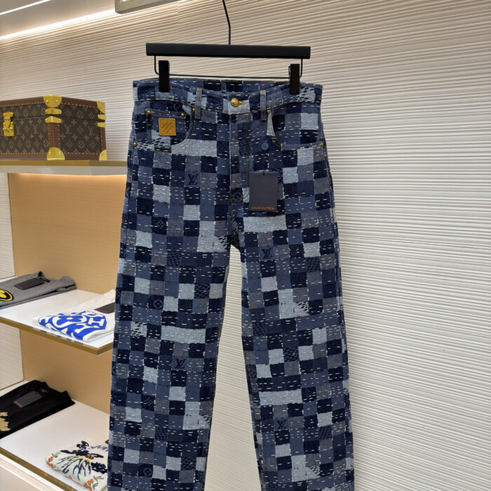 LOUIS VUITTON Embroidery Checkerboard DENIM JEANS ルイヴィトン 刺繍 チェッカーボード デニムパンツ