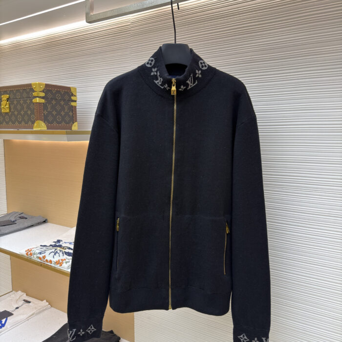 LOUIS VUITTON Knit Print Stand-up Collar jacket Black ルイヴィトン ニット プリント スタンドカラー ジャケット ブラック