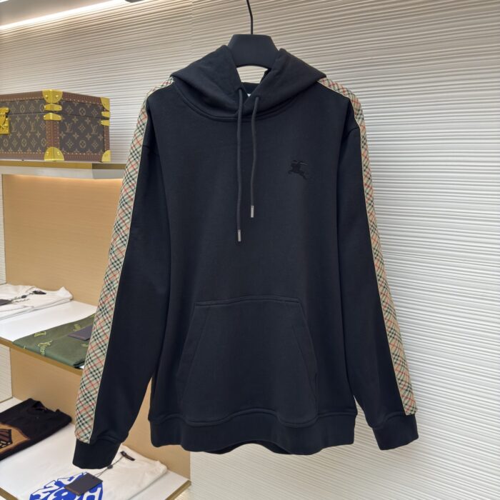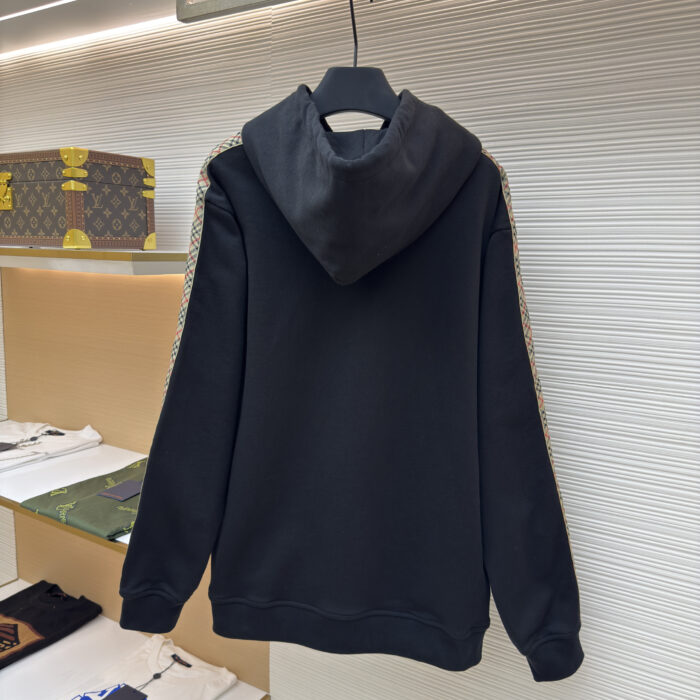 BURBERRY バーバリー チェックトリム コットン フーディー スリムフィット ブラック