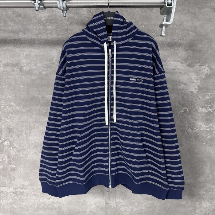 MiuMiu ミュウミュウ ロゴ ストライプ コットン フーディ パーカー フーディ