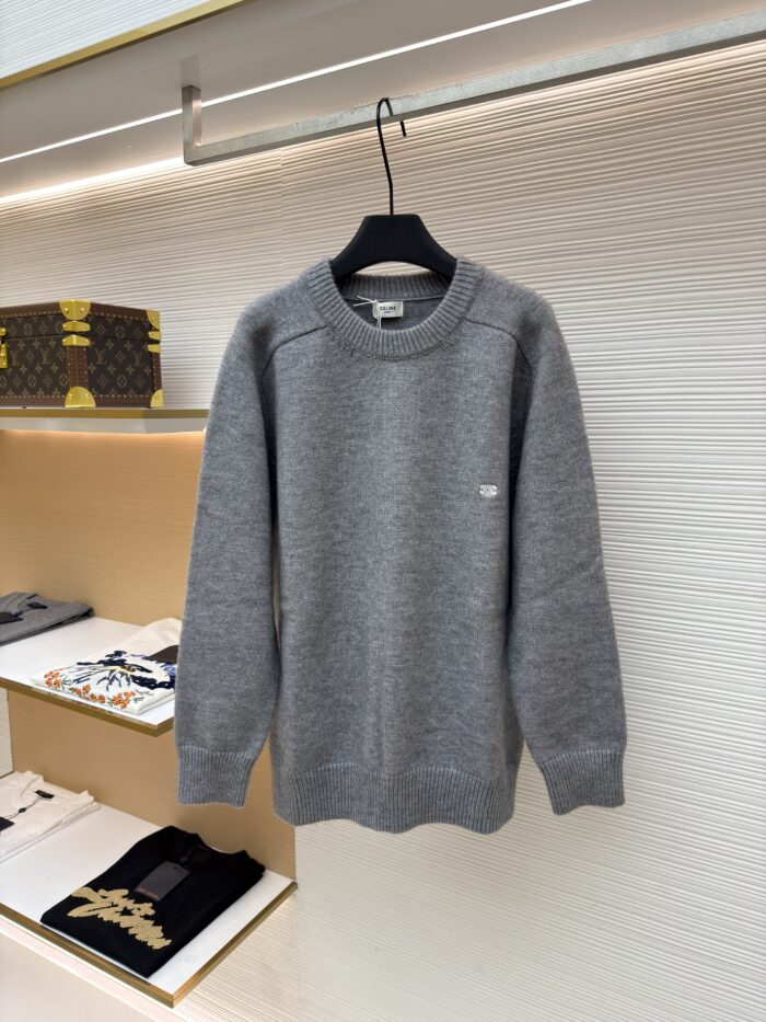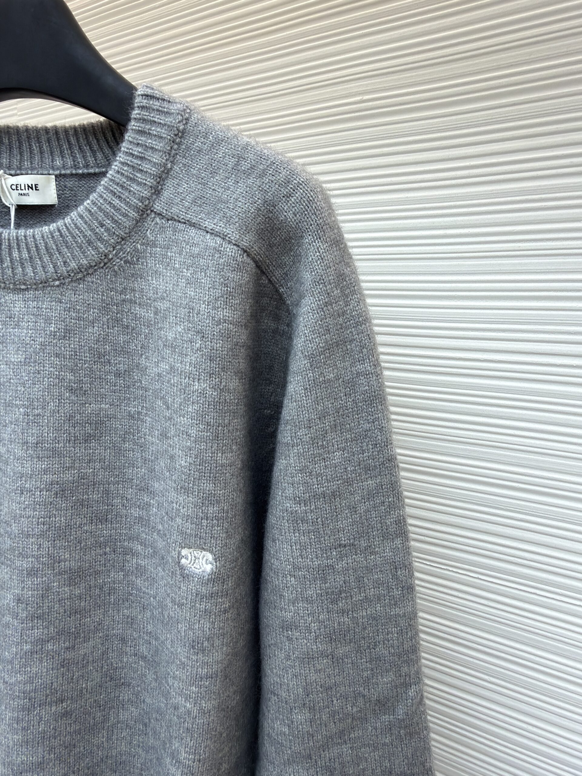 CELINE logo sweater セリーヌ 刺繍ロゴ セーター グレー