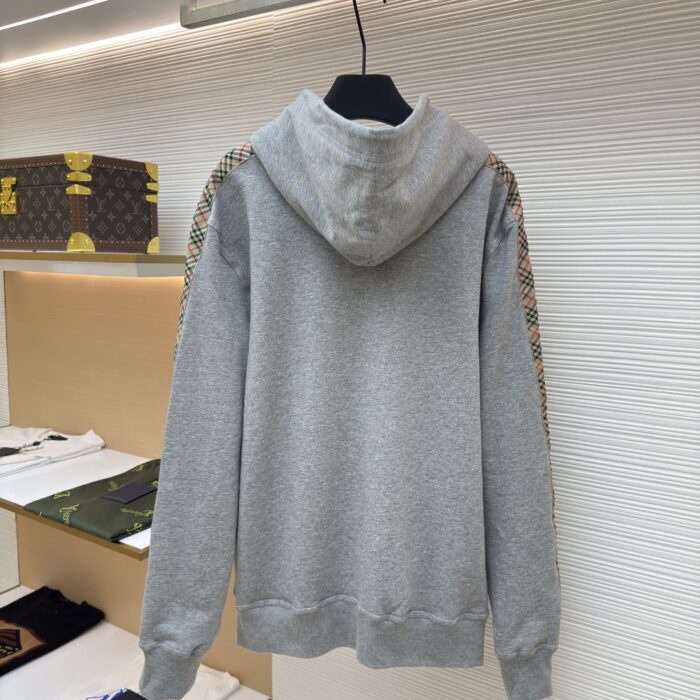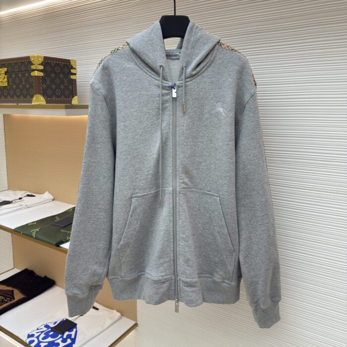 BURBERRY バーバリー チェックトリム コットン ジップフーディー スリムフィット グレー