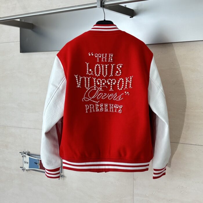 Louis Vuitton pearl button patchwork leather BASEBALL JACKET Red ルイヴィトン パールボタン パッチワークレザーベースボールジャケットレッド