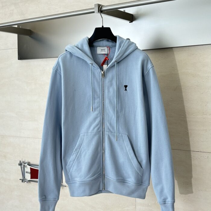 AMI PARIS Embroidery Black LOGO ZIP-UP HOODIE jacket アミパリス 刺繍 ブラック LOGO ジップアップパーカー ジャケット