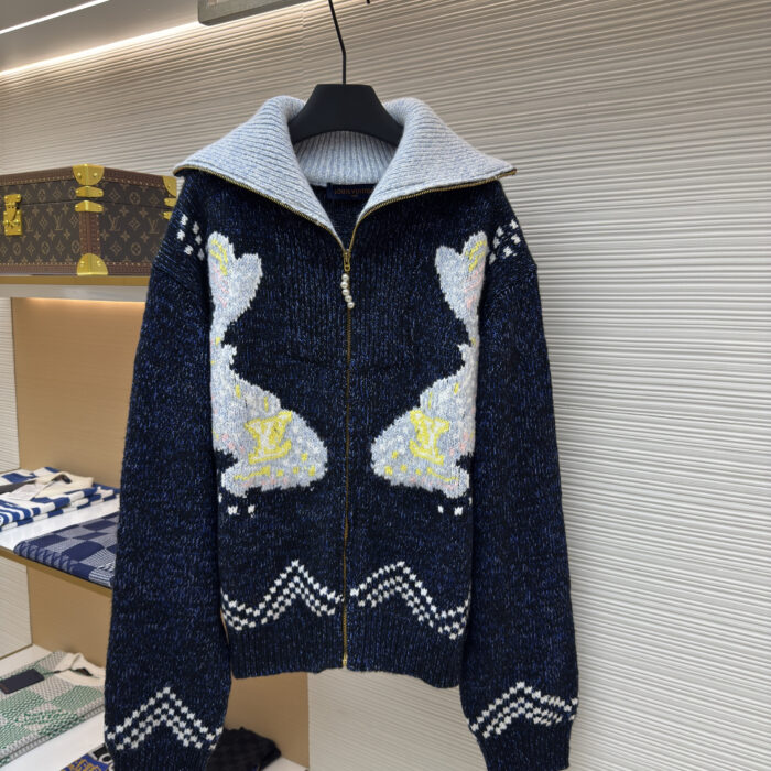 LOUIS VUITTON Nigo series LOGO Turn-Down Collar ZIP-UP knit Sweater jacket ルイヴィトン ニゴシリーズ LOGO ターンダウンカラー ジップアップ ニットセーター ジャケット