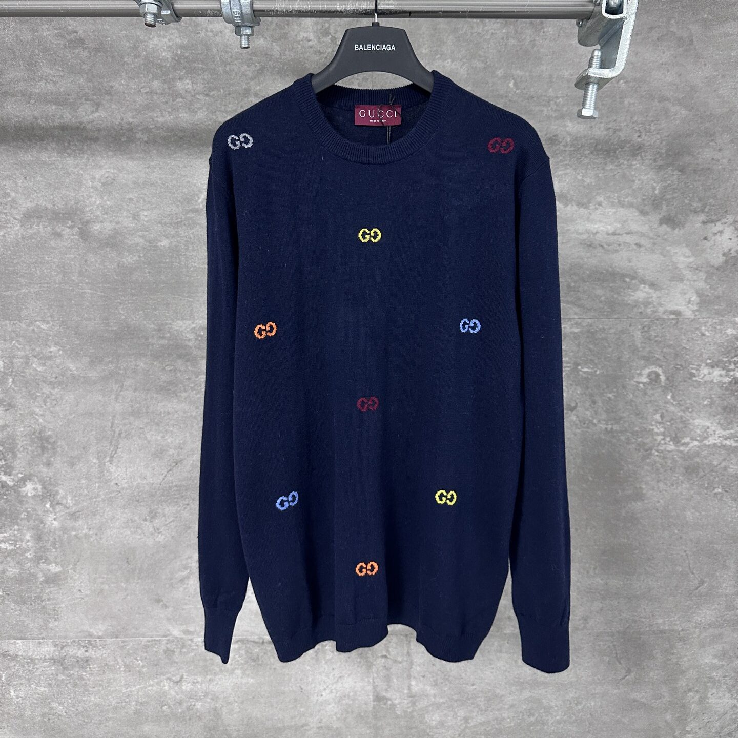 GUCCI グッチ GG柄  ウール カシミヤ セーター ネイビー