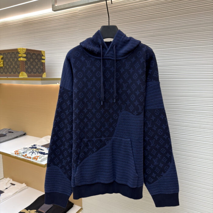 LOUIS VUITTON Patchwork Knit Hoodie Sweatshirt ルイヴィトン パッチワーク ニット パーカー スウェット