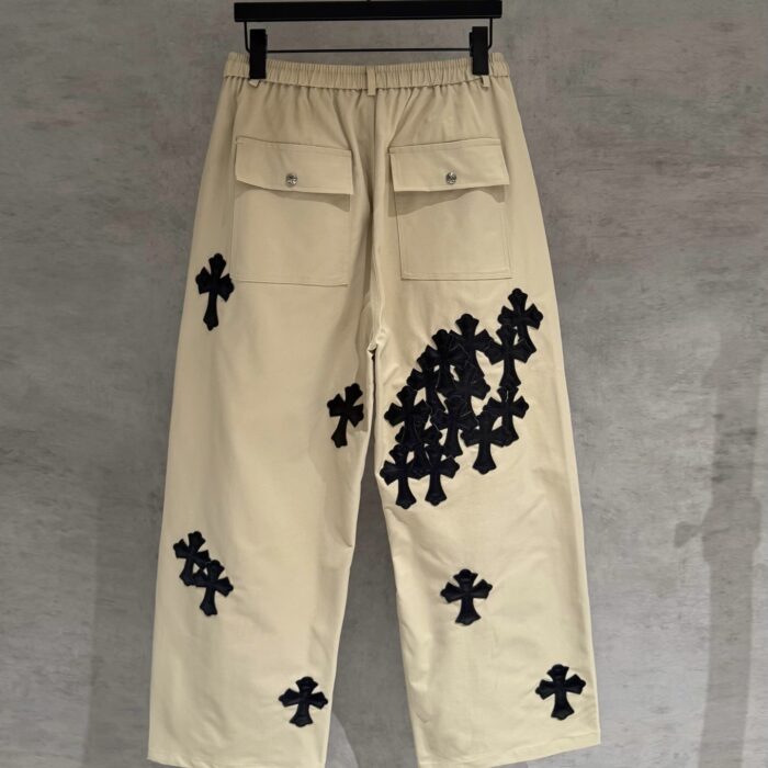 Chrome Hearts クロムハーツ BEIGE クロス レザー 刺繍 ベージュ レトロ カジュアルパンツ
