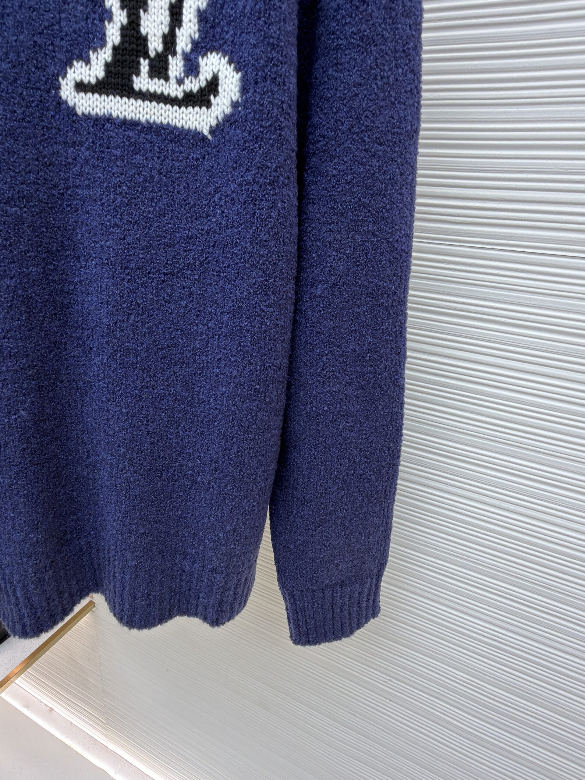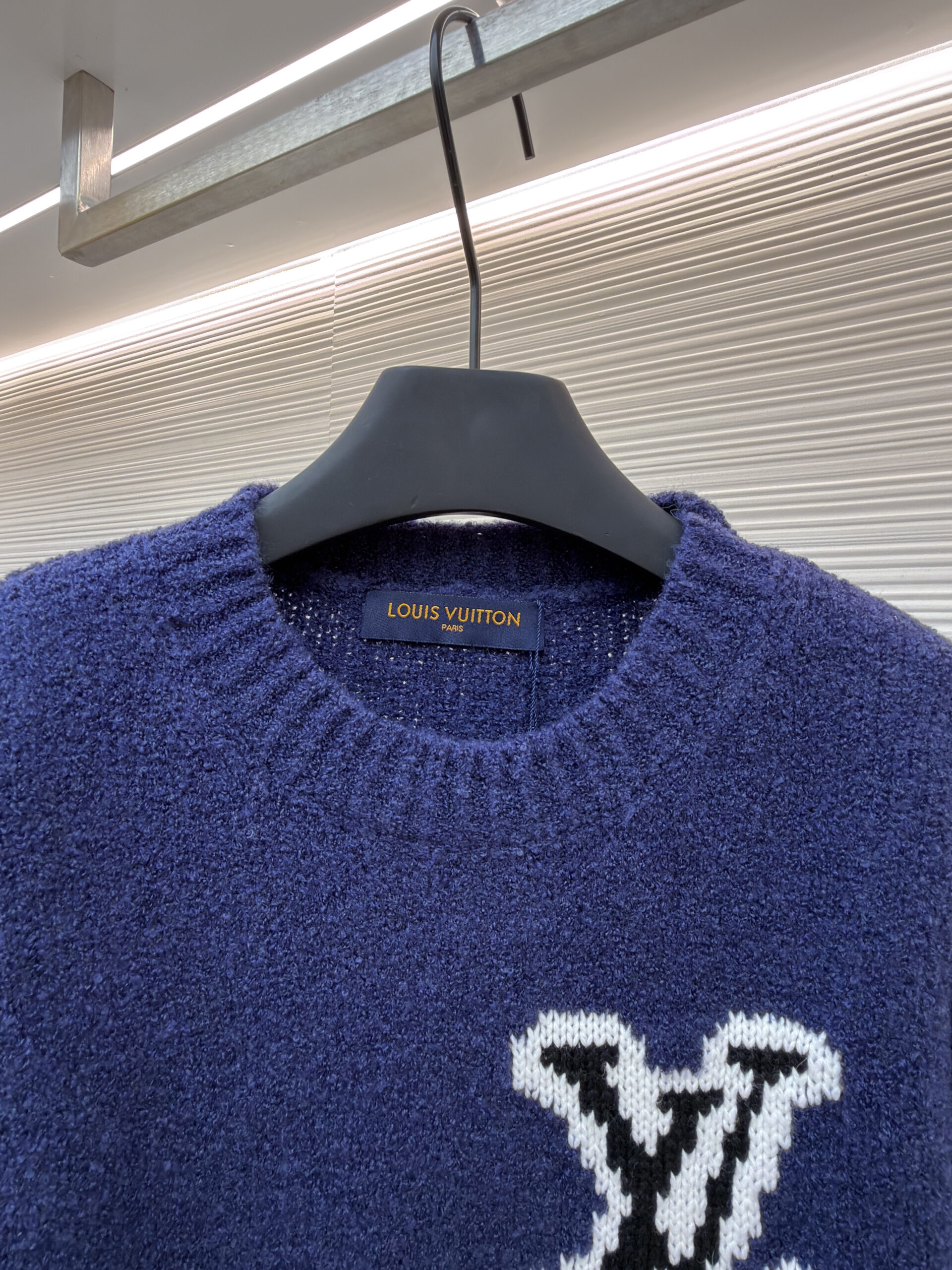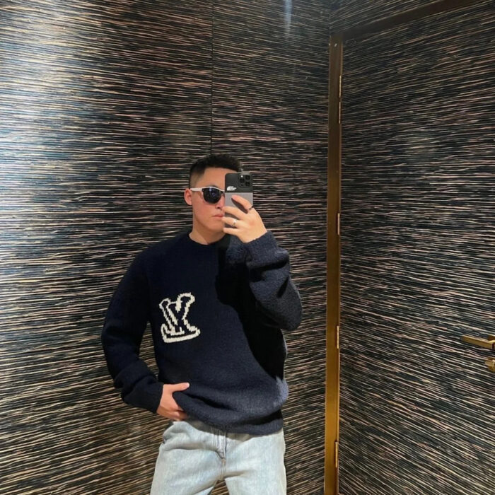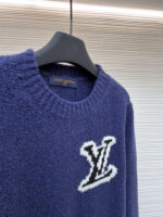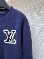 LOUIS VUITTON Embroidery Black LOGO Knit Round neck Sweater Navy ルイヴィトン 刺繍 ブラック LOGO クルーネック ニットセーター ネイビー