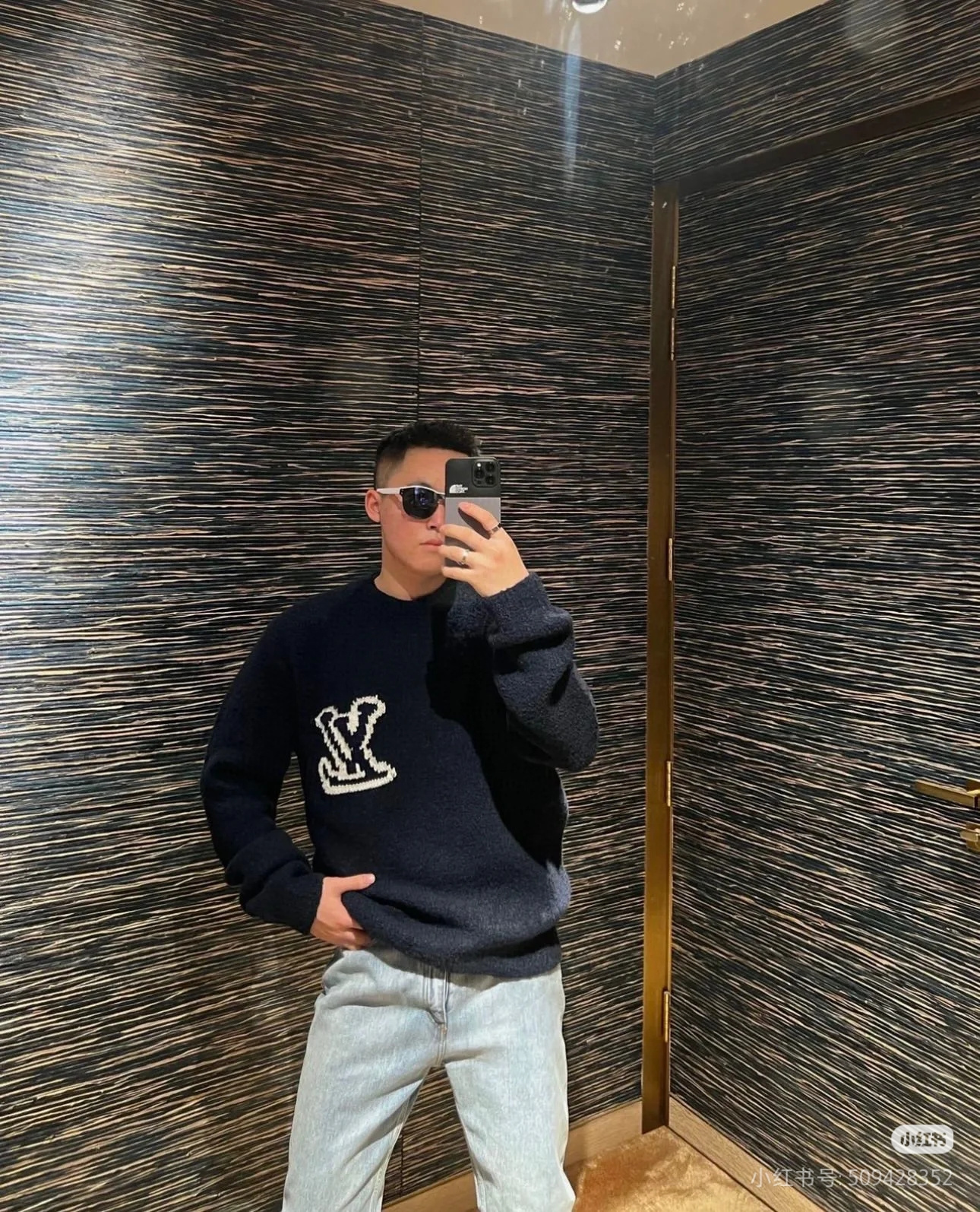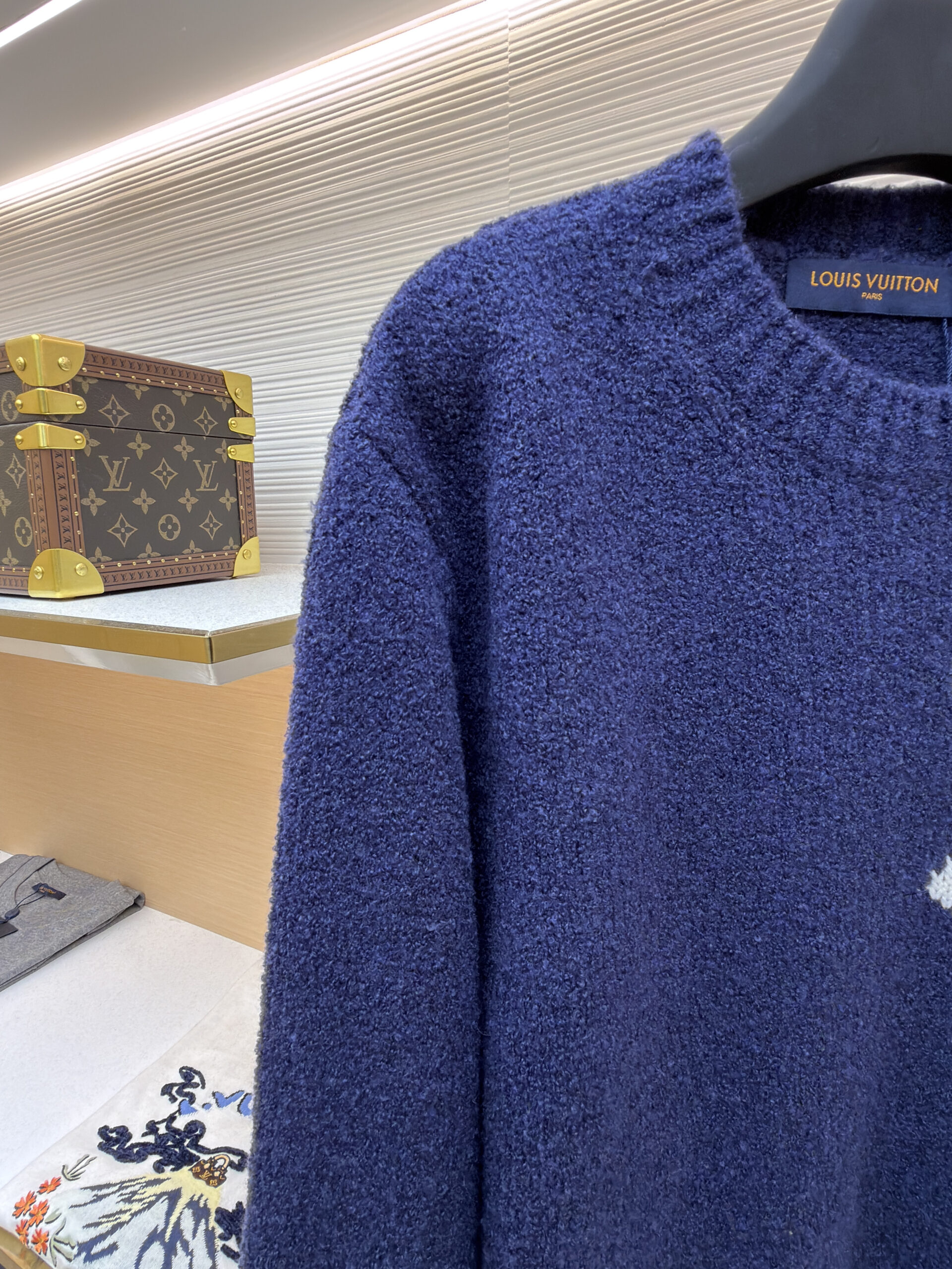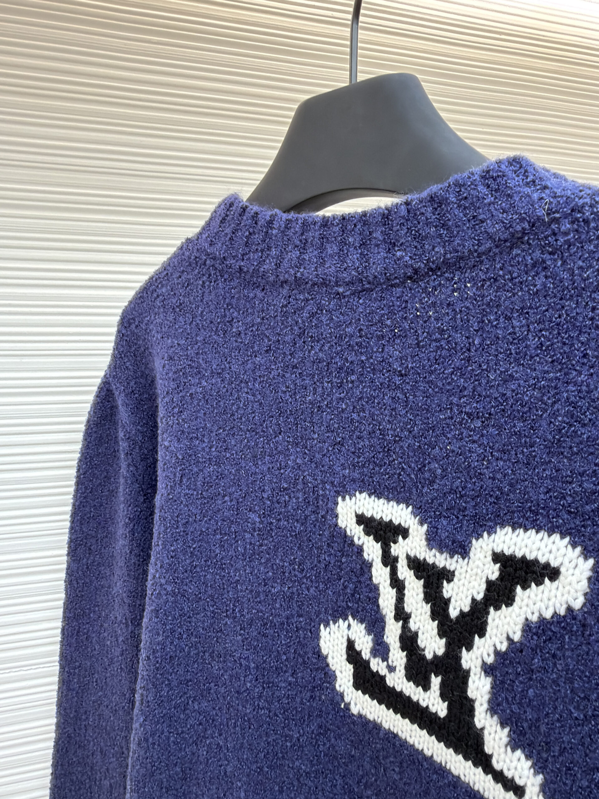 LOUIS VUITTON Embroidery Black LOGO Knit Round neck Sweater Navy ルイヴィトン 刺繍 ブラック LOGO クルーネック ニットセーター ネイビー