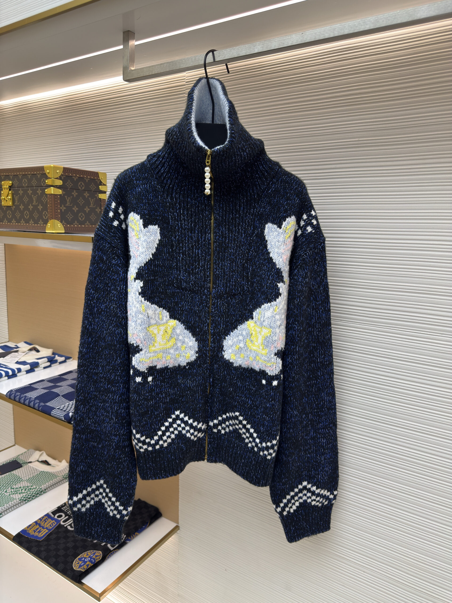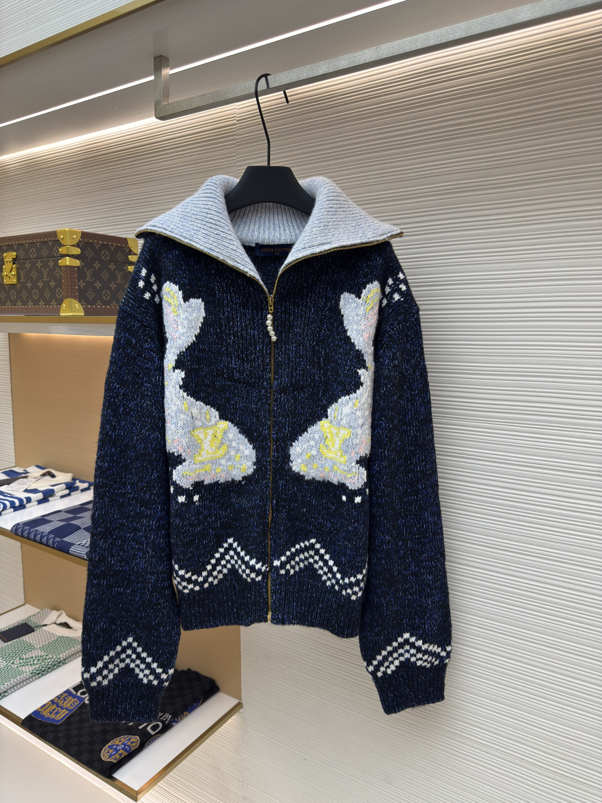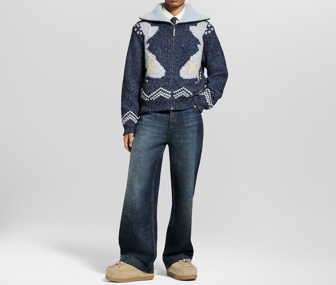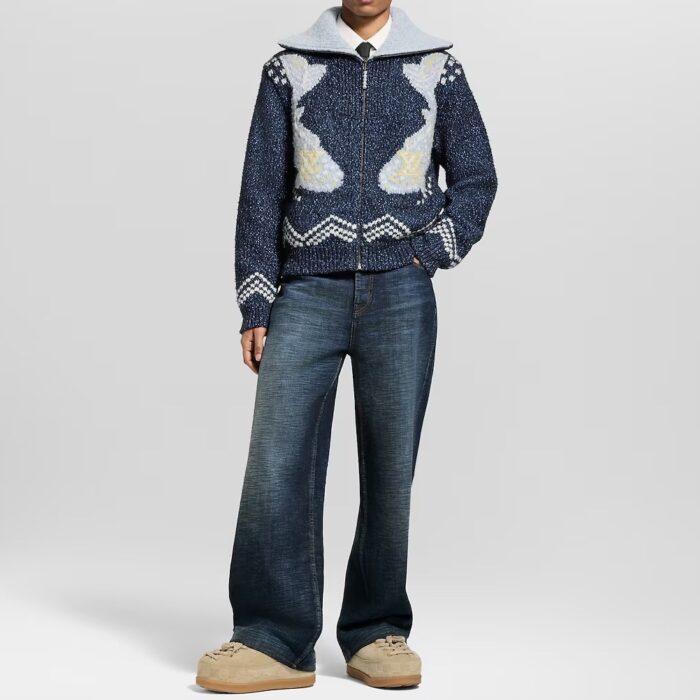 LOUIS VUITTON Nigo series LOGO Turn-Down Collar ZIP-UP knit Sweater jacket ルイヴィトン ニゴシリーズ LOGO ターンダウンカラー ジップアップ ニットセーター ジャケット