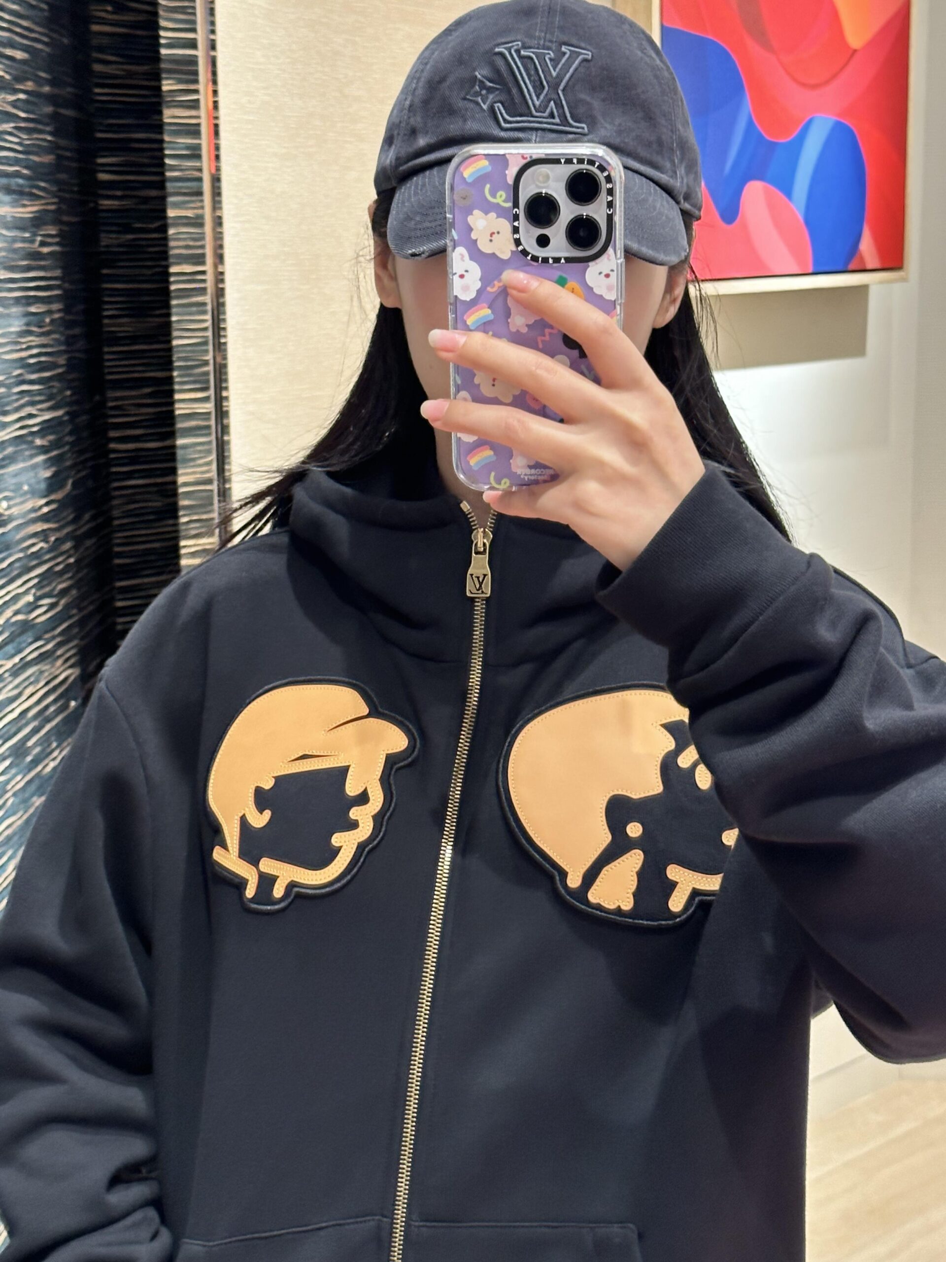 LOUIS VUITTON Print Hoodie Sweatshirt Black ルイヴィトン プリント パーカー スウェット ブラック