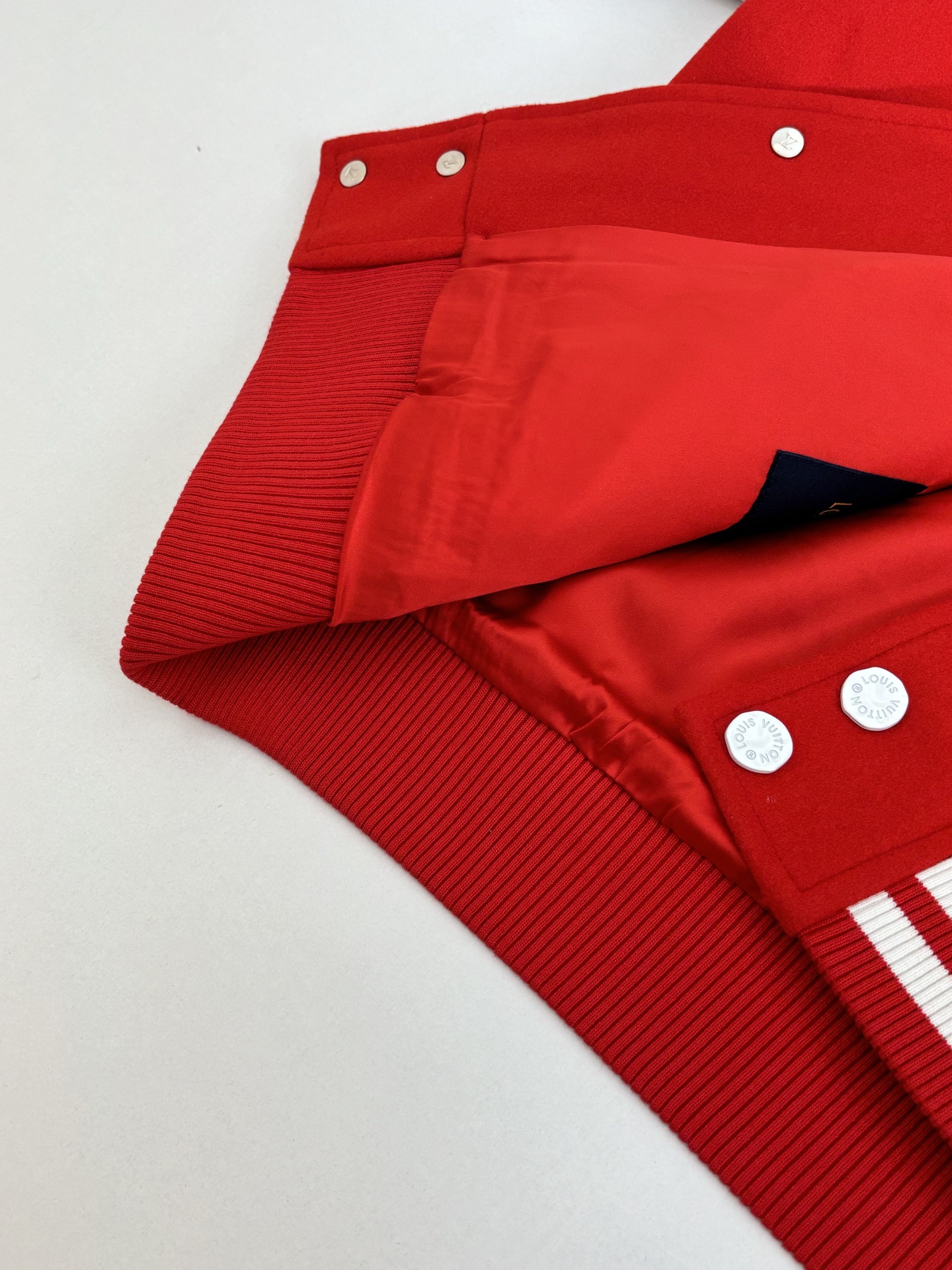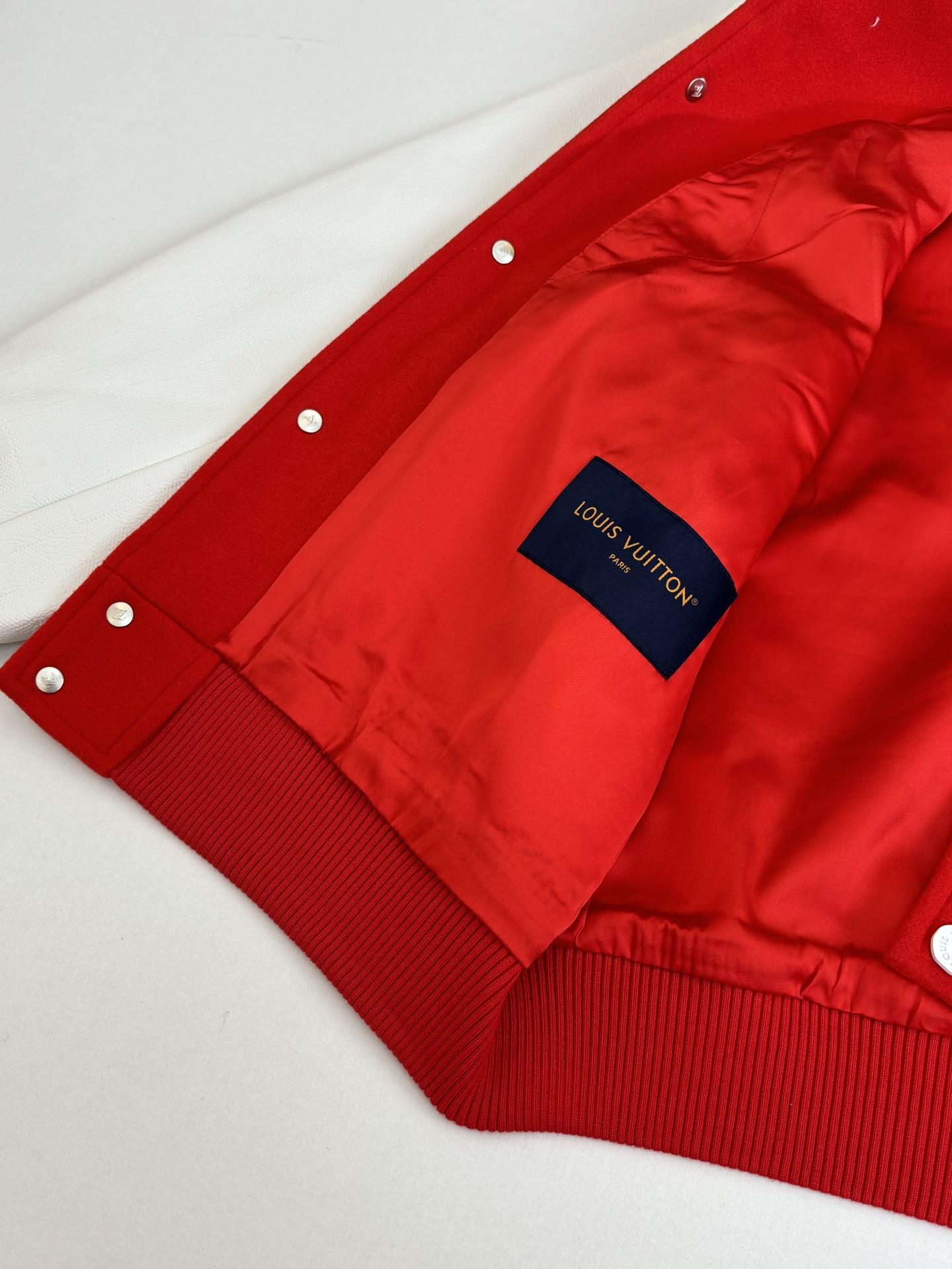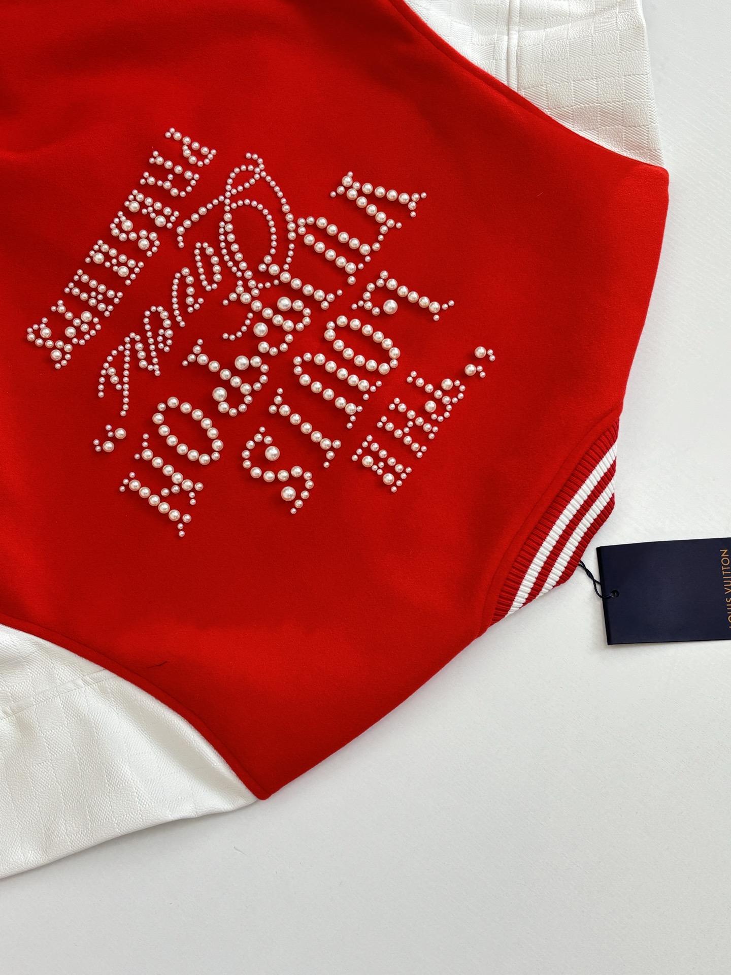 Louis Vuitton pearl button patchwork leather BASEBALL JACKET Red ルイヴィトン パールボタン パッチワークレザーベースボールジャケットレッド