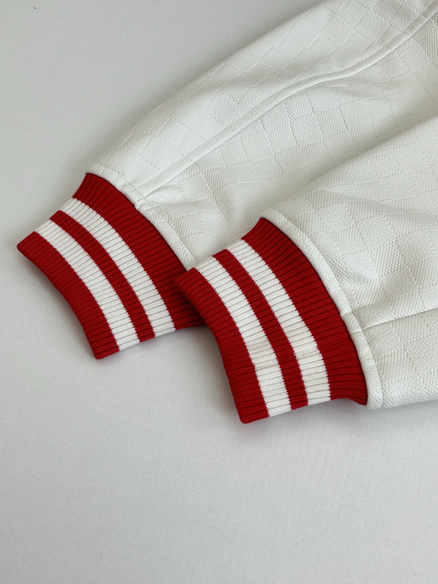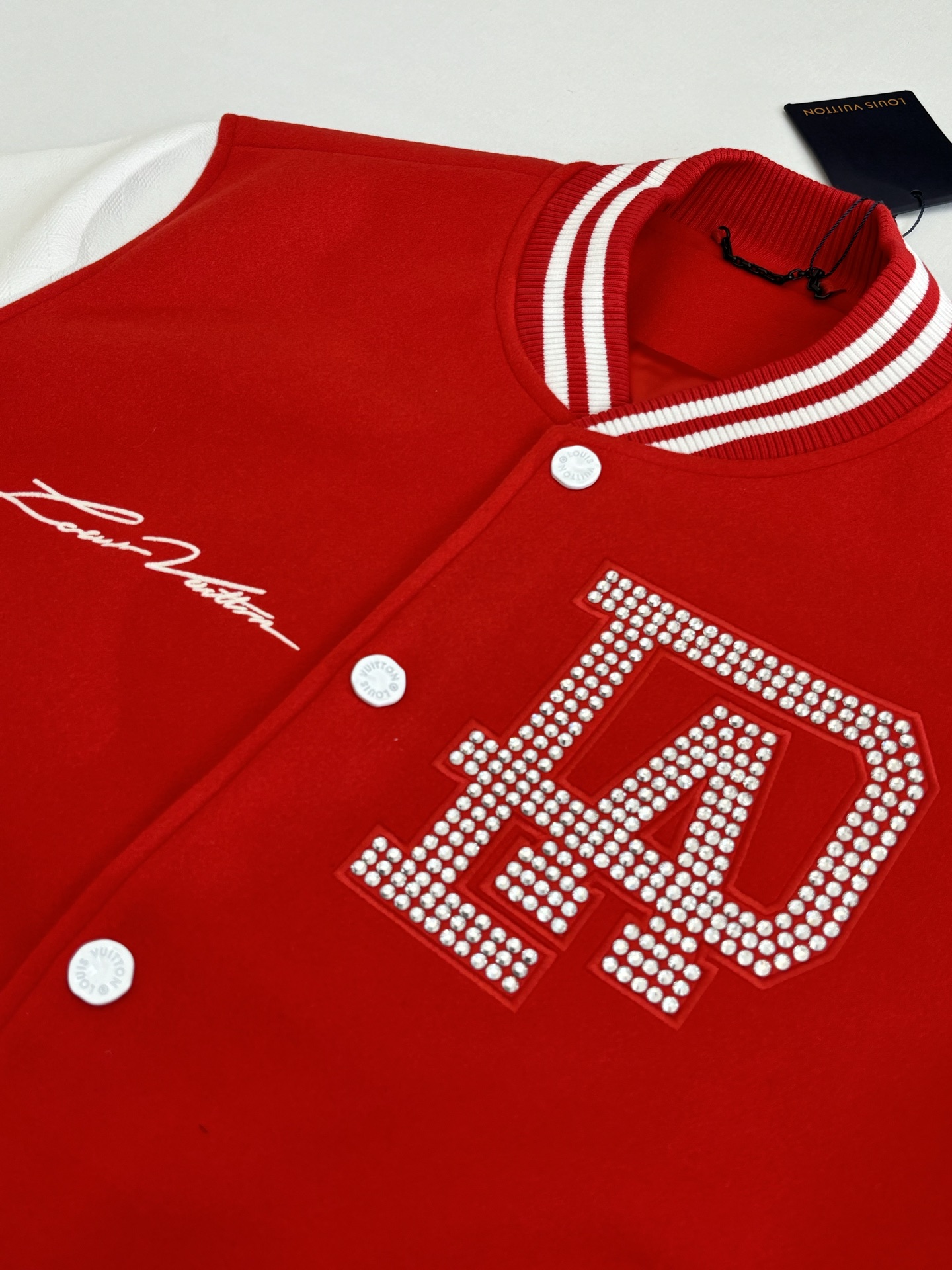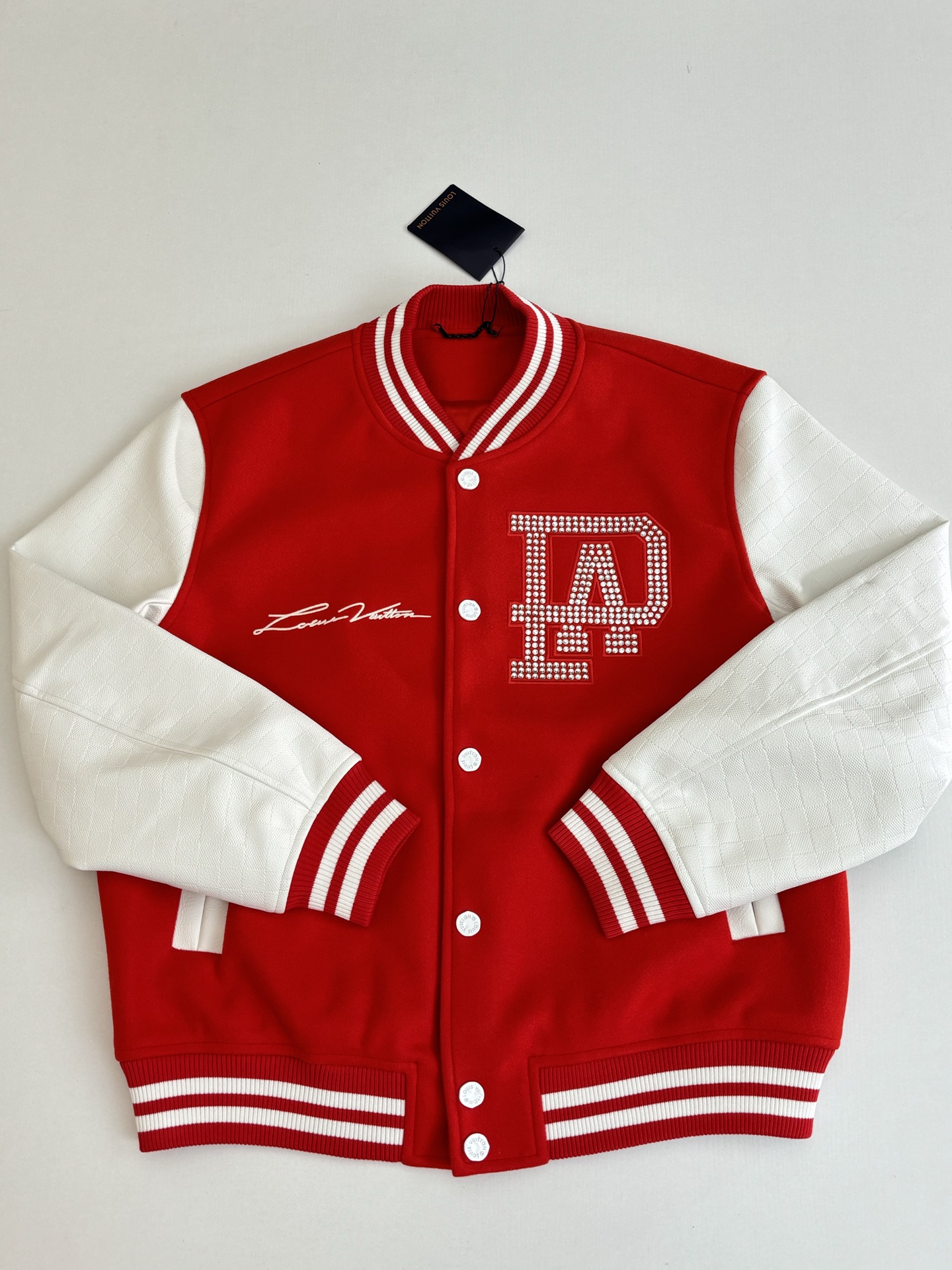 Louis Vuitton pearl button patchwork leather BASEBALL JACKET Red ルイヴィトン パールボタン パッチワークレザーベースボールジャケットレッド