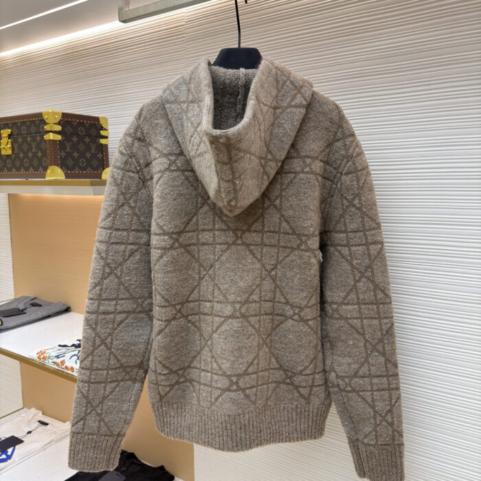DIOR ディオール ICON フード付き スウェットシャツ カナージュ コットン & ウール ブレンド ニット