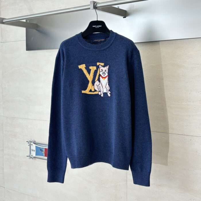 Louis Vuitton LOGO Round neck Knit Sweater Blue ルイヴィトン LOGO クルーネック ニットセーター ブルー