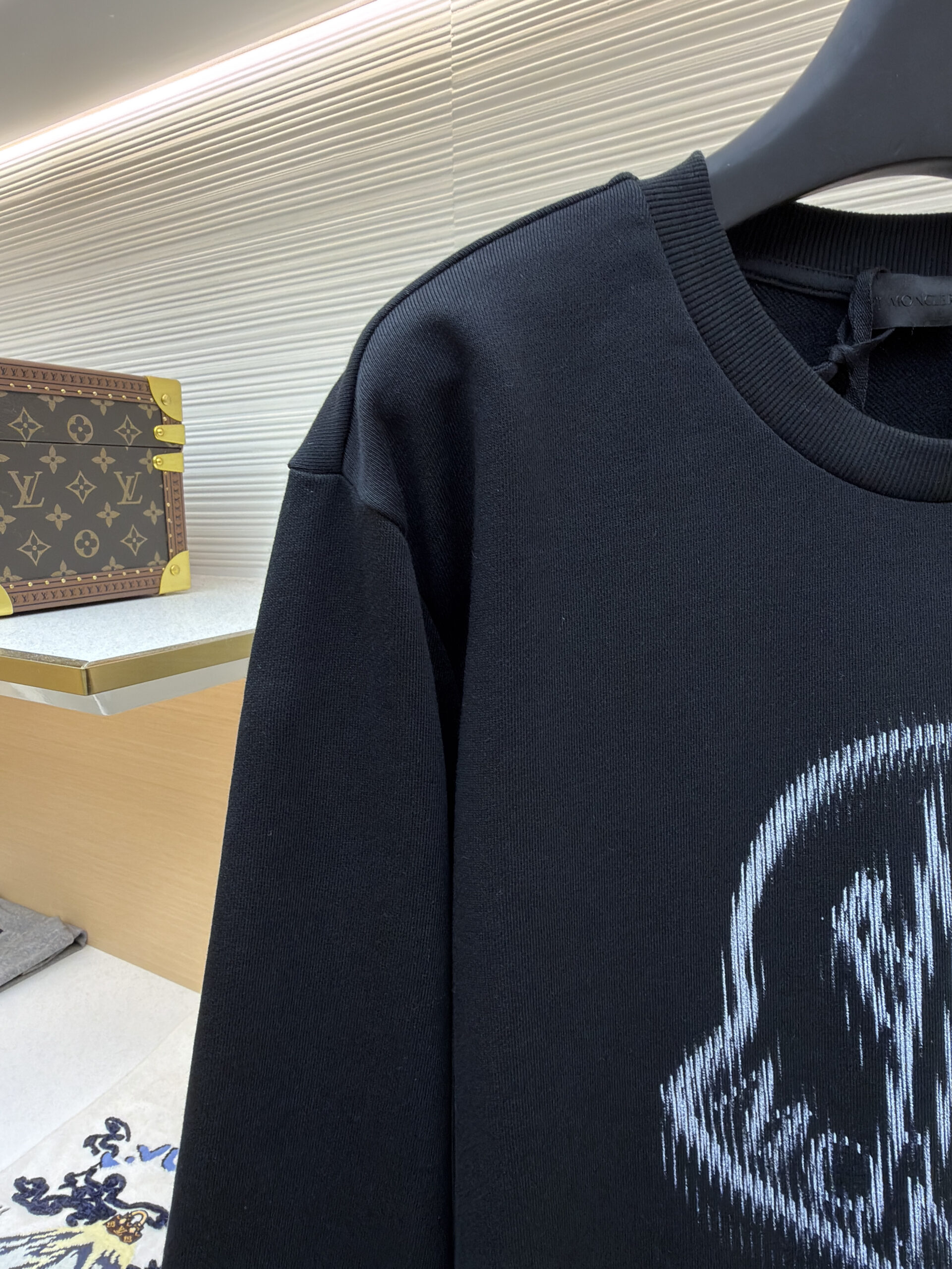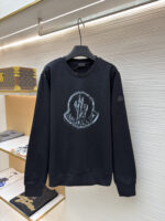 Moncler Round neck emboss Sweater Black モンクレール クルーネック エンボス ニットセーター ブラック