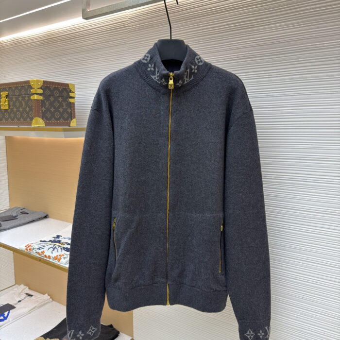 LOUIS VUITTON Knit Print Stand-up Collar jacket Grayルイヴィトン ニット プリント スタンドカラー ジャケット グレー