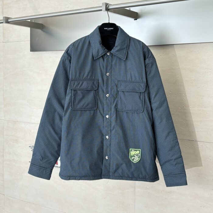 DIOR Embroidery Shirt Cotton-Padded Jacket Blue ディオール シャツ ダウンジャケット ブルー