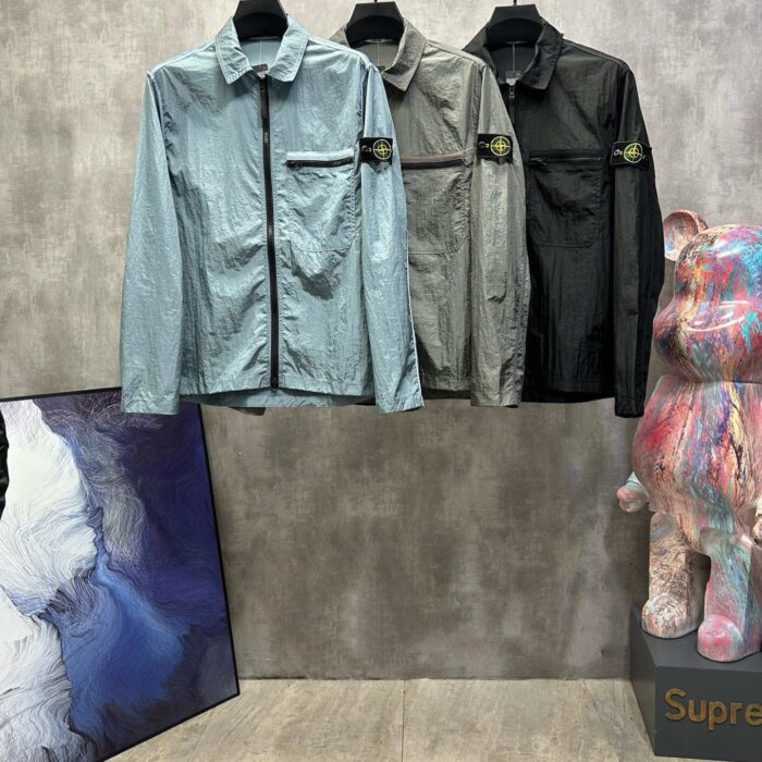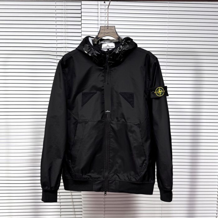 STONE ISLAND ZIP-UP Windproof Rain Jacket Black ストーン アイランド ジップアップ 防风アウトドアジャケット ブラック