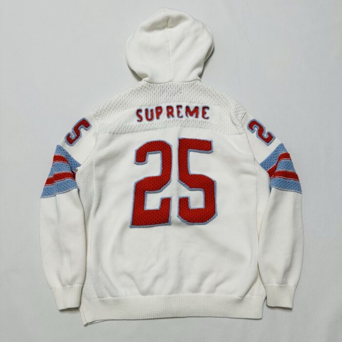 ¥26,950現在の価格は ¥26,950 です。Supreme SS25 SPORT ZIP UP FOOTBALL HOOD SWEATER White シュプリーム パーカー ニット セーター