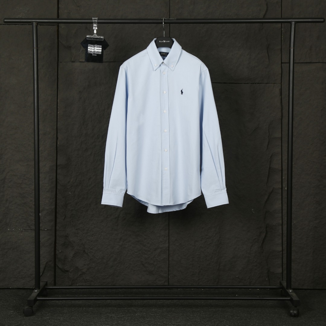 Ralph Lauren Embroidery Black LOGO Single-Breasted Long-sleeve Shirt Blue ラルフ ローレン 刺繍 ブラック LOGO シングルブレスト 長袖シャツ ブルー