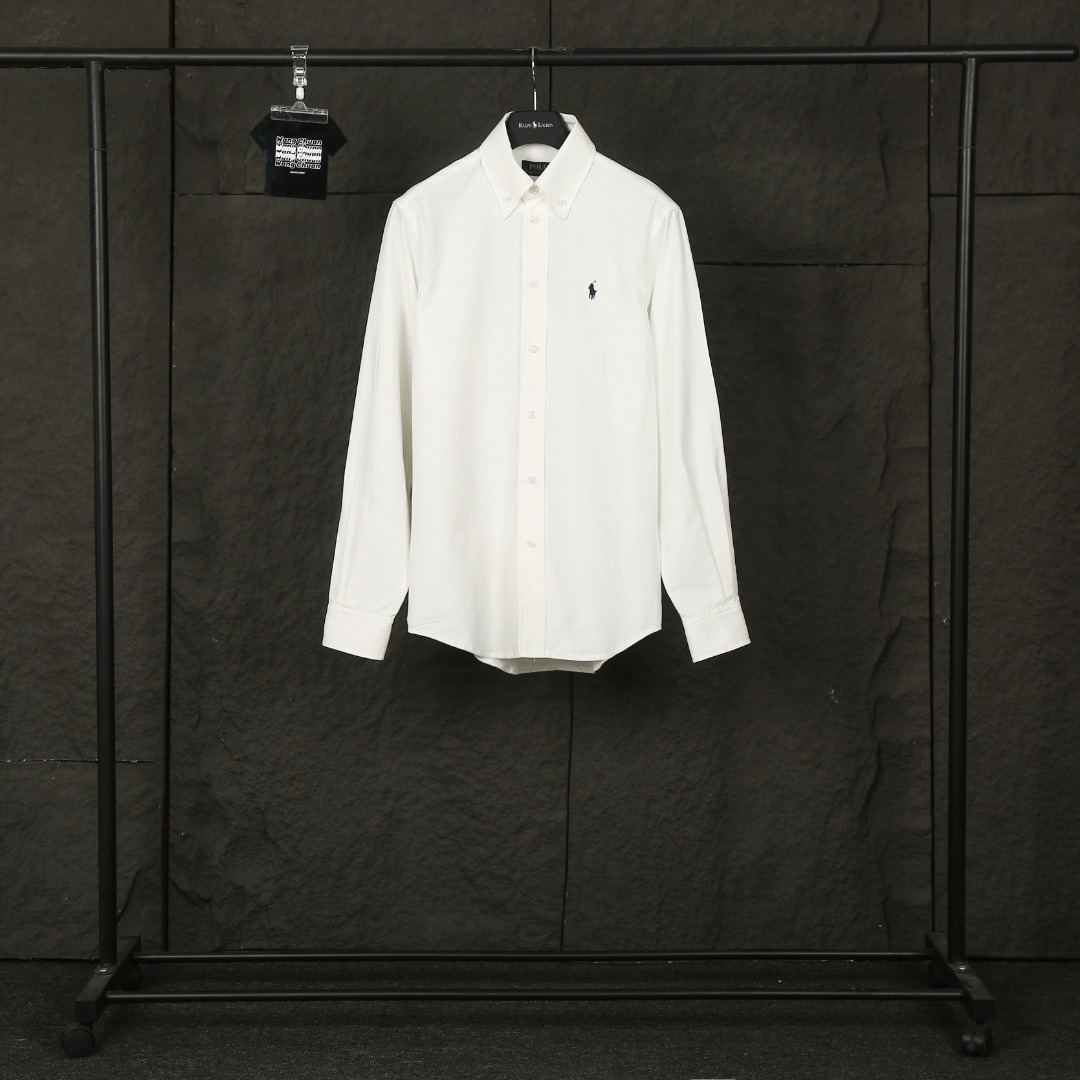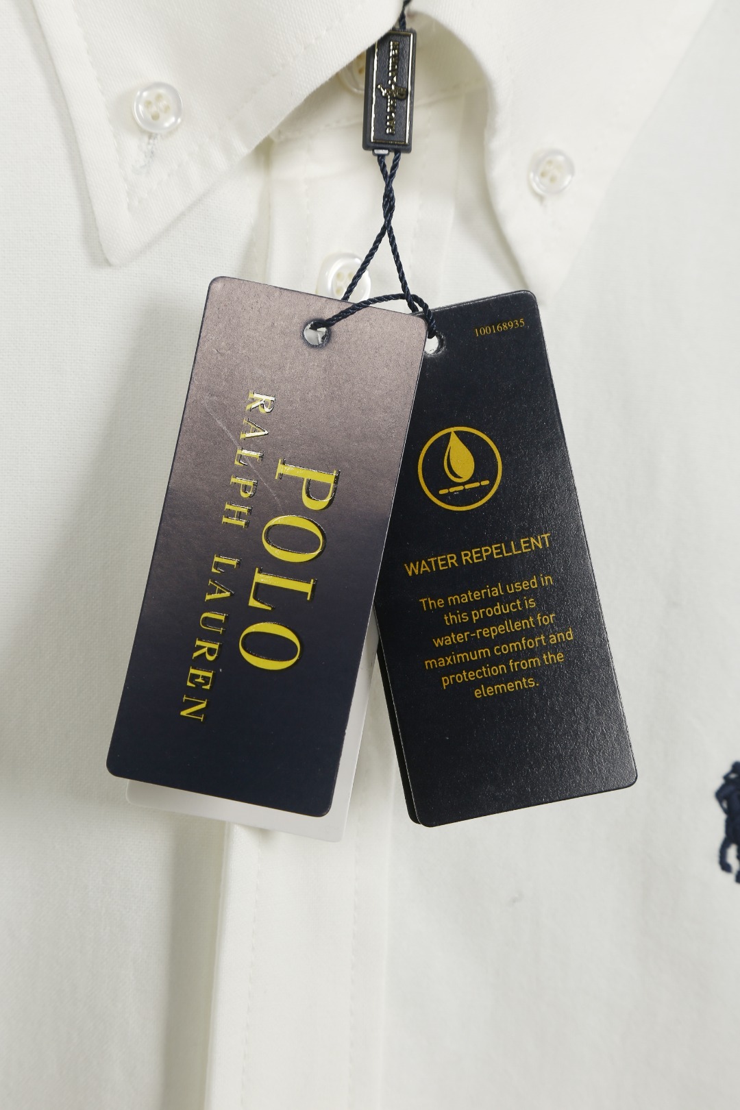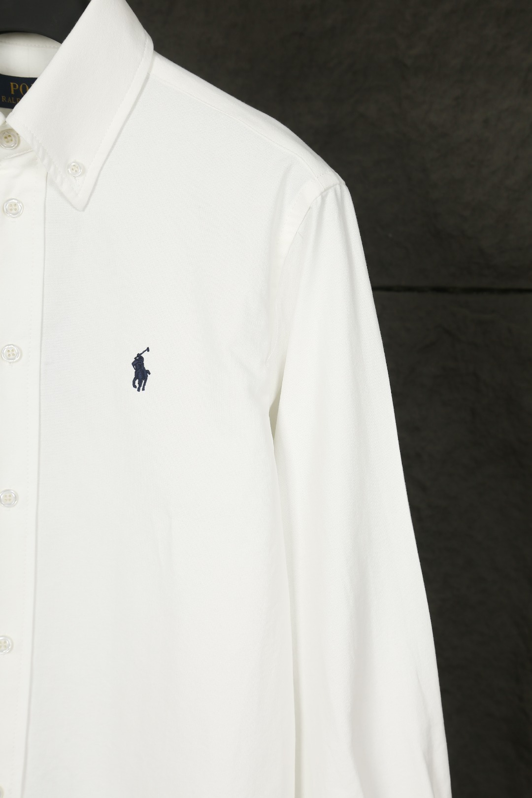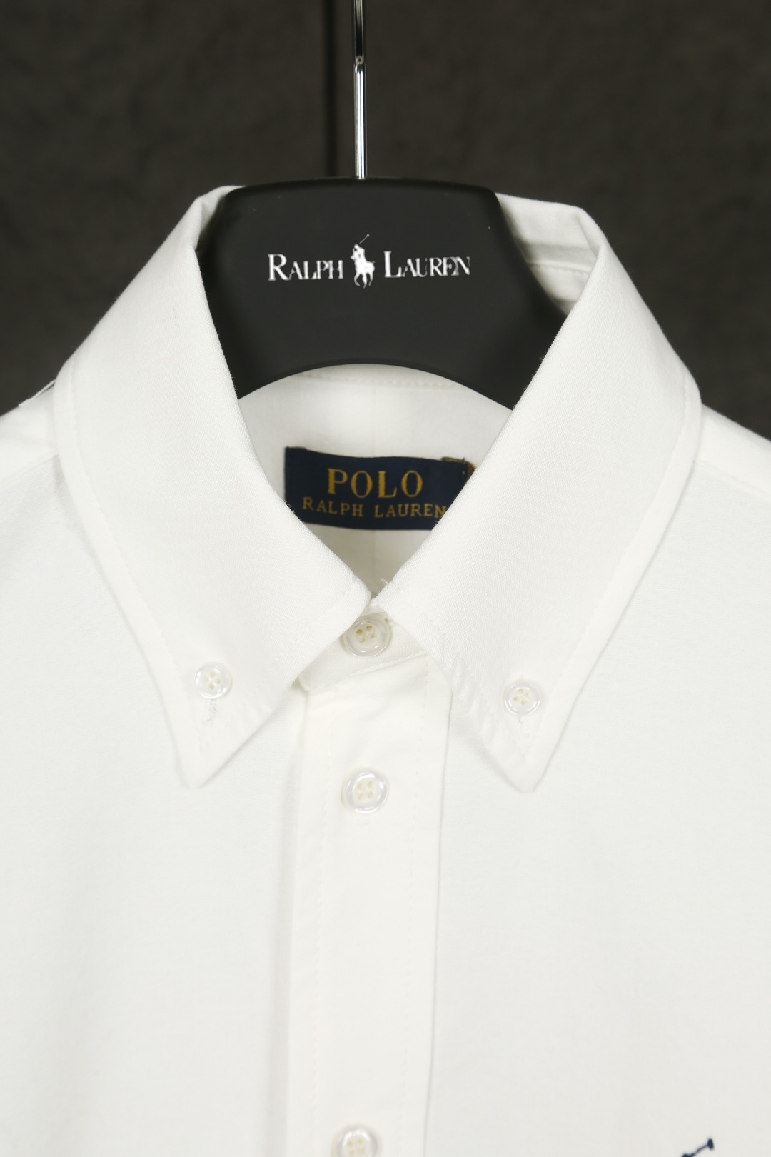 Ralph Lauren Embroidery Black LOGO Single-Breasted Long-sleeve Shirt White ラルフ ローレン 刺繍 ブラック LOGO シングルブレスト 長袖シャツ ホワイト