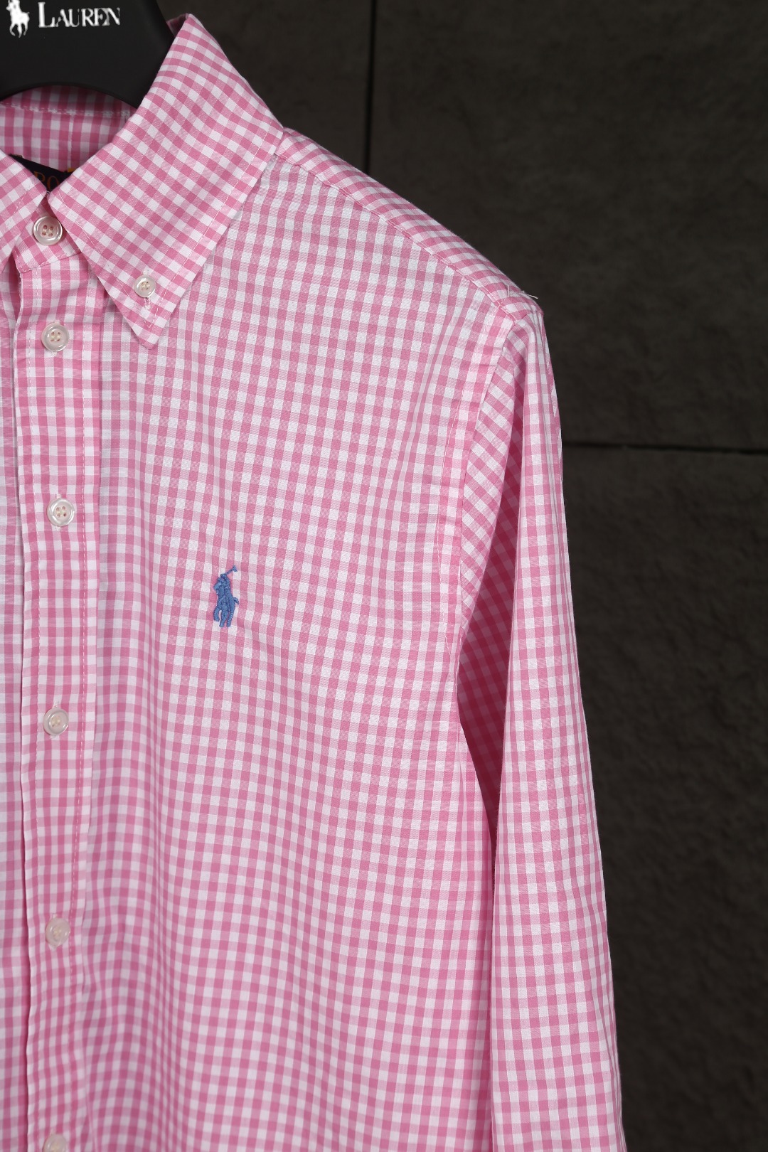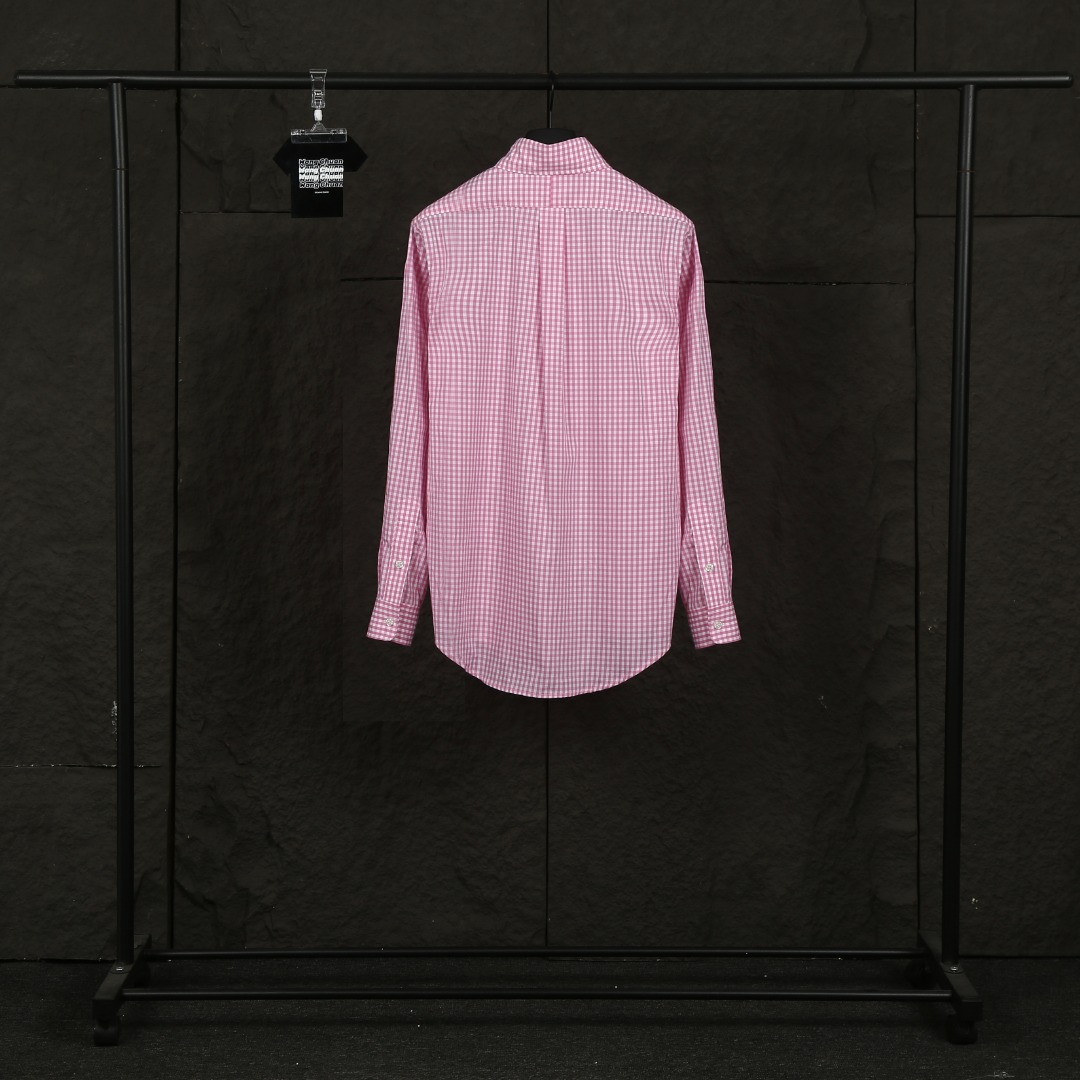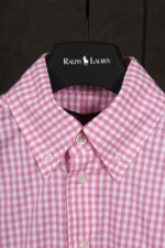 Ralph Lauren Embroidery Navy LOGO Plaid Long-sleeve Shirt Pink ラルフ ローレン 刺繍 ネイビー LOGO プレード 長袖シャツ ピンク
