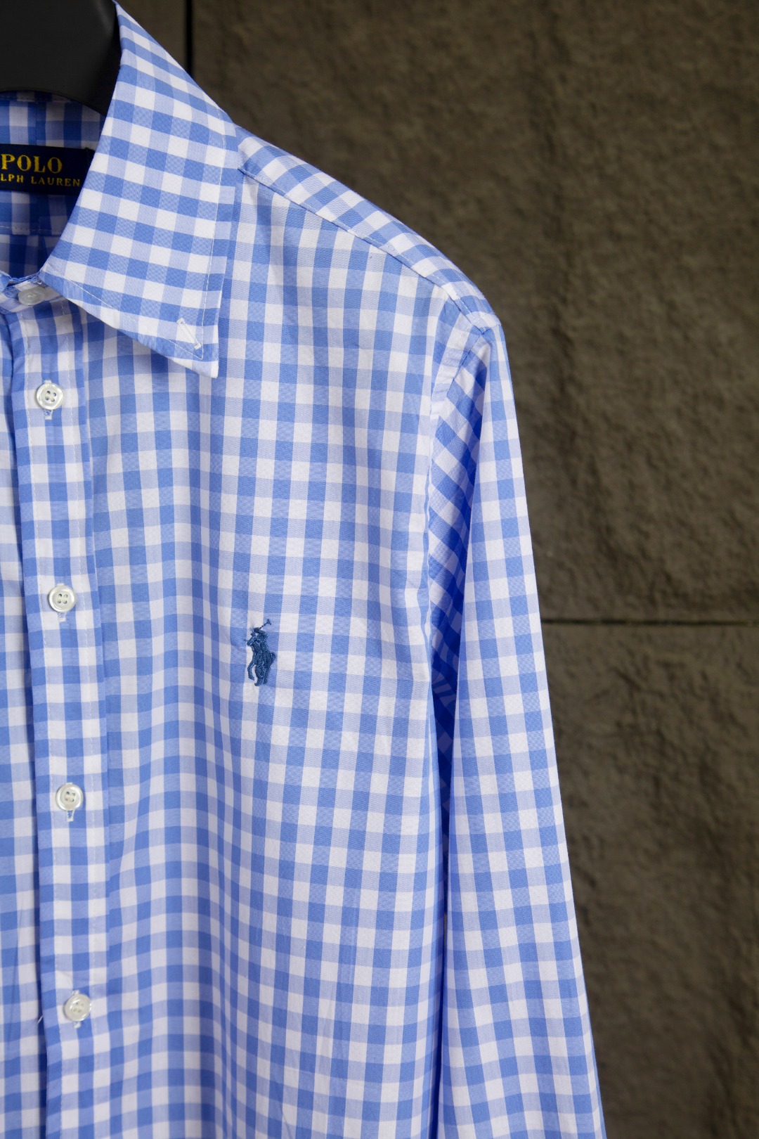 Ralph Lauren Embroidery Navy LOGO stripe Long-sleeve Shirt Blue ラルフ ローレン 刺繍 ネイビー LOGO ストライプ 長袖シャツ ブルー