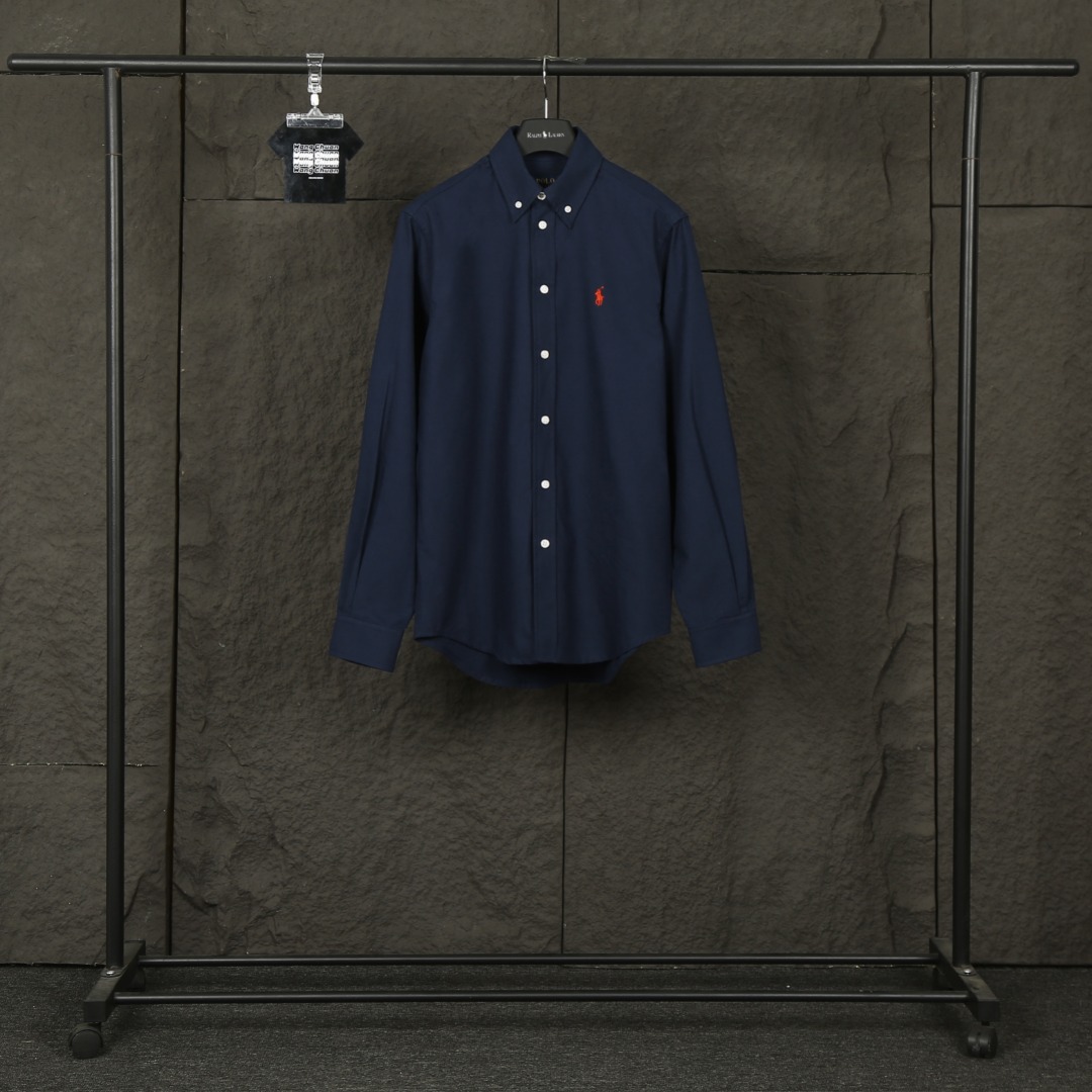 Ralph Lauren Embroidery Red LOGO Single-Breasted Long-sleeve Shirt Navy ラルフ ローレン 刺繍 レッド LOGO シングルブレスト 長袖シャツ ネイビー