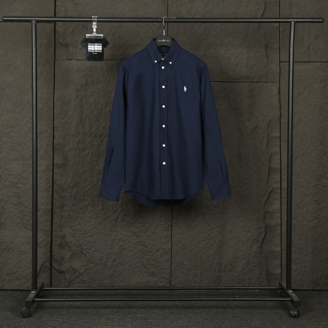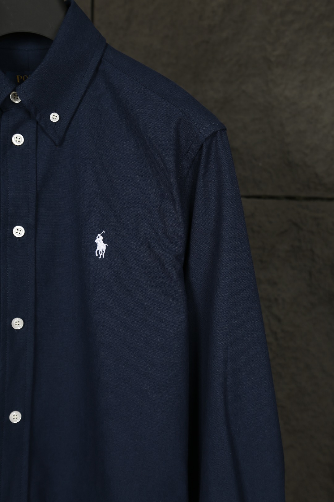Ralph Lauren Embroidery White LOGO Single-Breasted Long-sleeve Shirt Navy ラルフ ローレン 刺繍 ホワイト LOGO シングルブレスト 長袖シャツ ネイビー