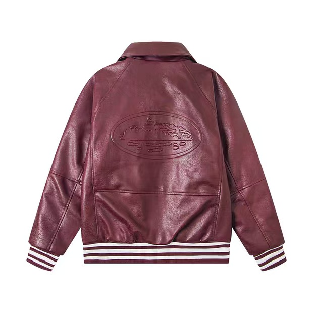 CORTEIZ LOGO PU レザー ダウンジャケット ジッパー レザージャケット