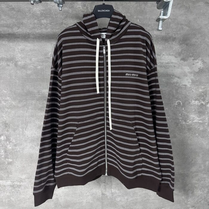 MiuMiu ミュウミュウ ロゴ ストライプ コットン フーディ パーカー フーディ ブラウン