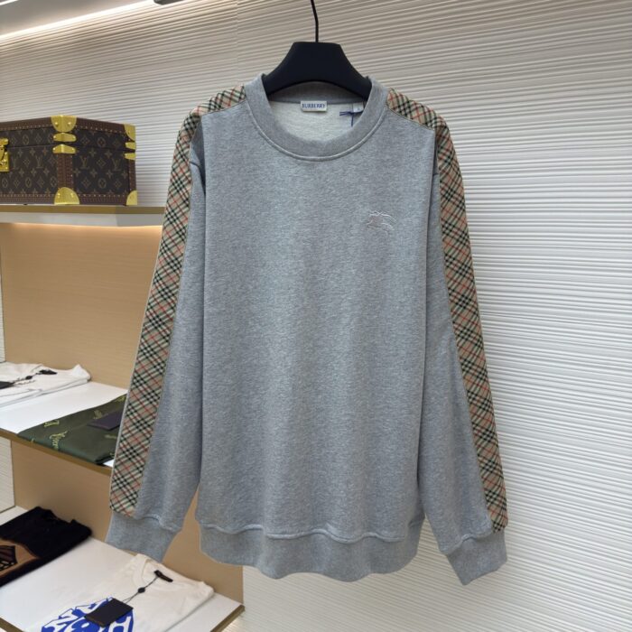 BURBERRY バーバリー SWEATSHIRTS チェックトリム コットンスウェット グレー