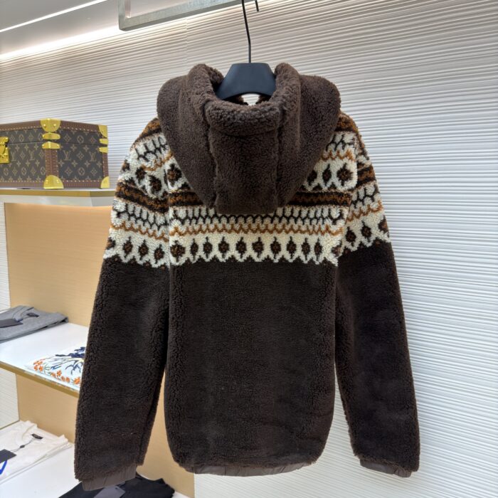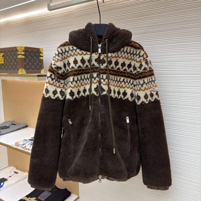 MONCLER モンクレール Jacquard teddy zip-up hoodie フリースジャケット ジップアップパーカー ブラウン