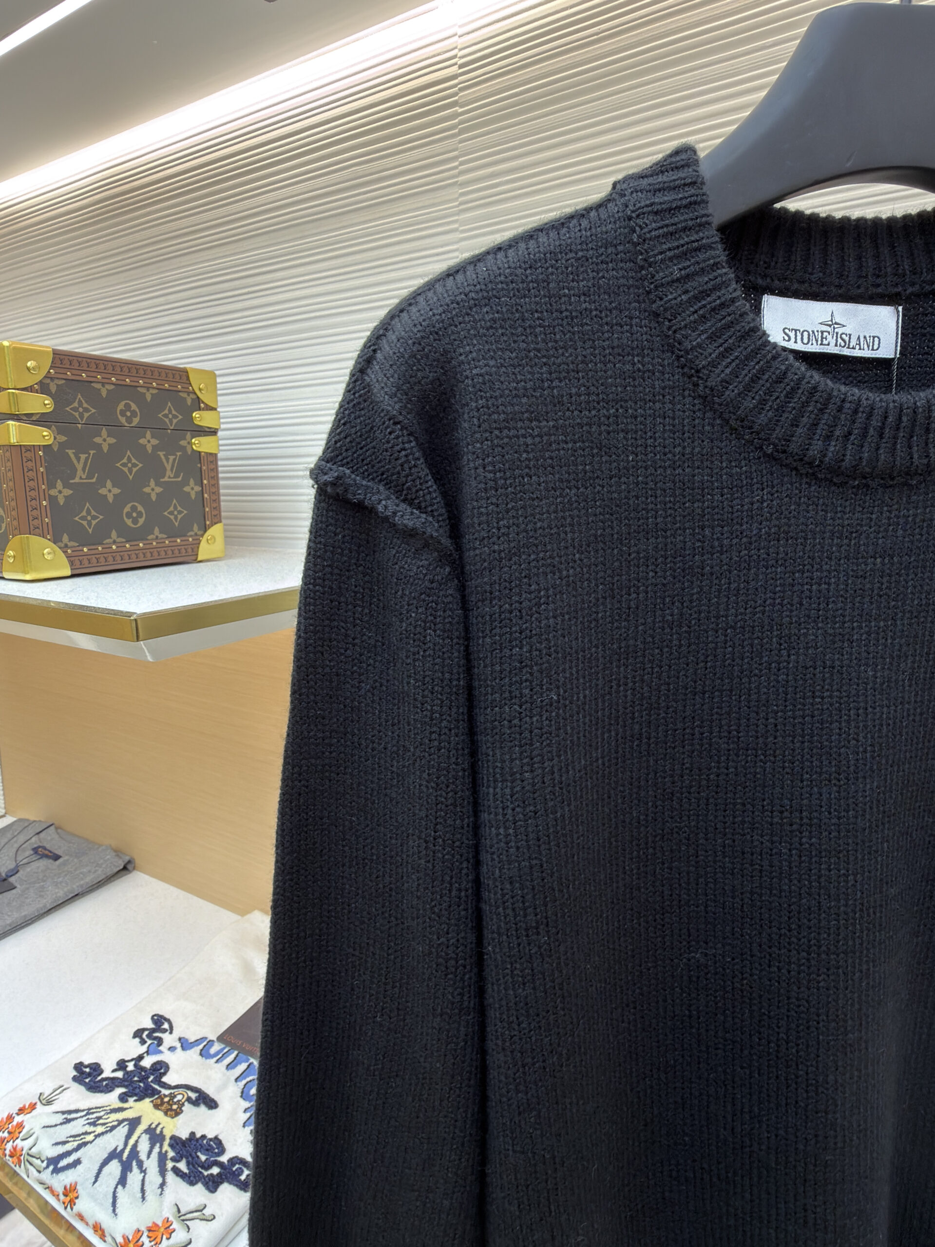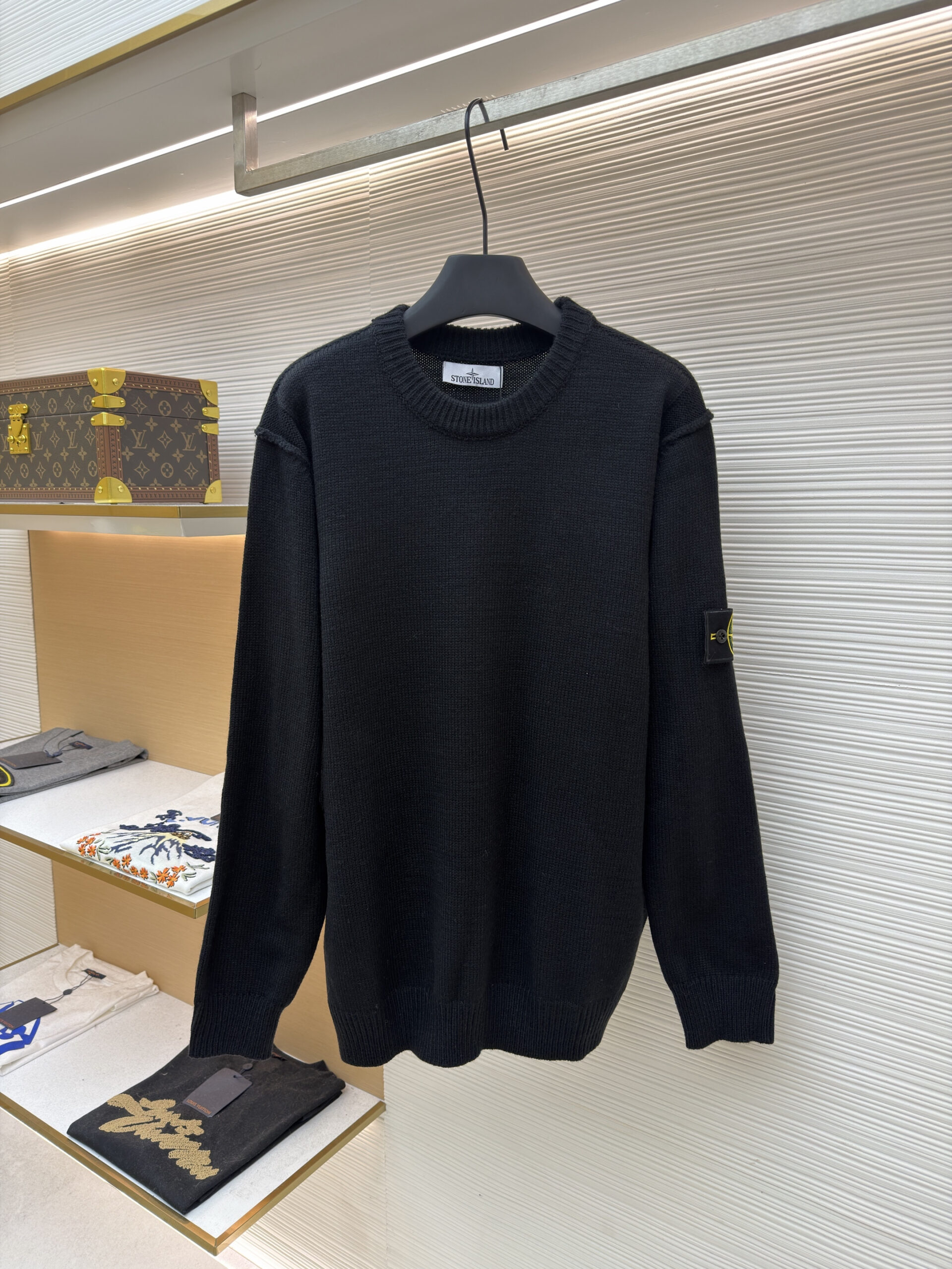 STONE ISLAND emblem Round neck knit Sweater Green ストーン アイランド バッジ ニットセーター グリーン