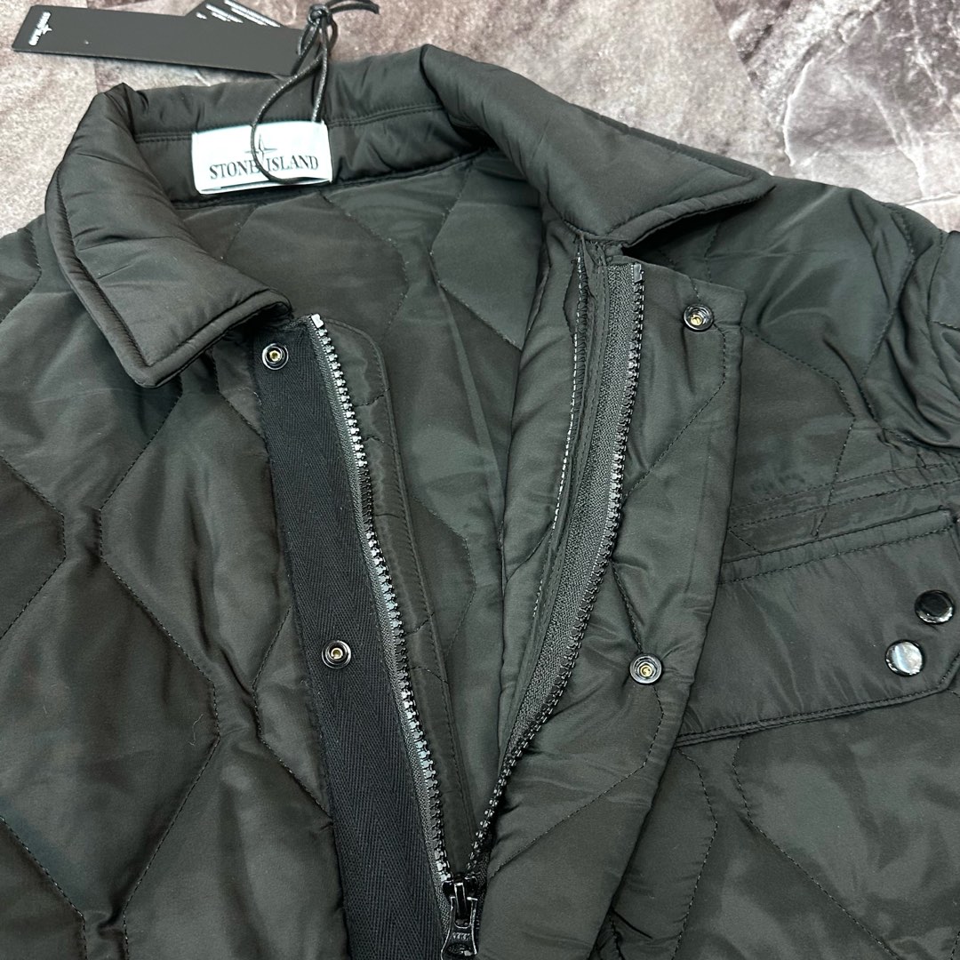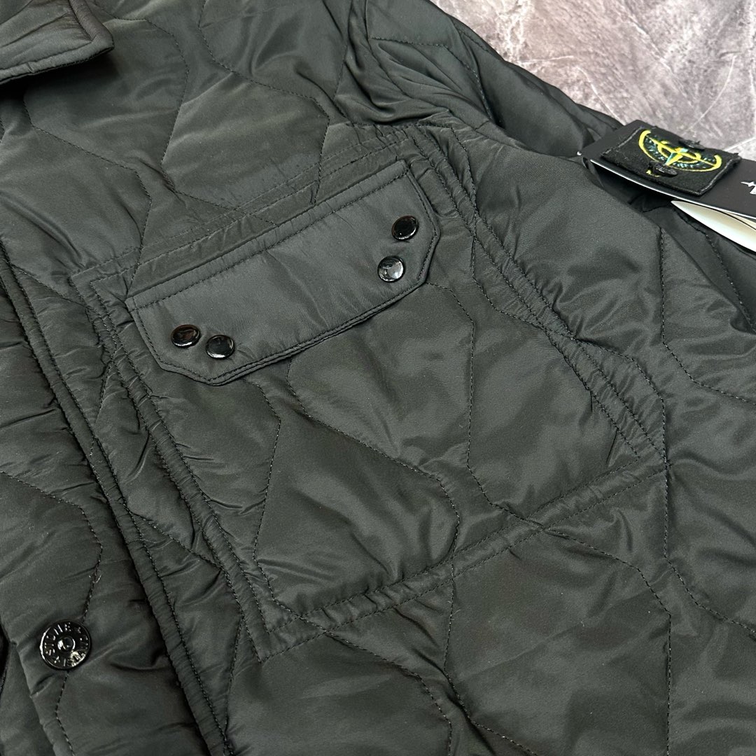 STONE ISLAND emblem Single-Breasted interlayer cotton jacket Black ストーン アイランド バッジ シングルブレスト 中綿 ジャケット ブラック