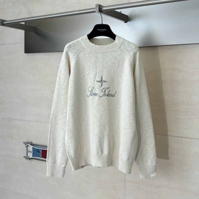 STONE ISLAND Embroidery LOGO knit Round neck Sweater Beige ストーン アイランド 刺繍 LOGO クルーネック ニットセーター ベージュ