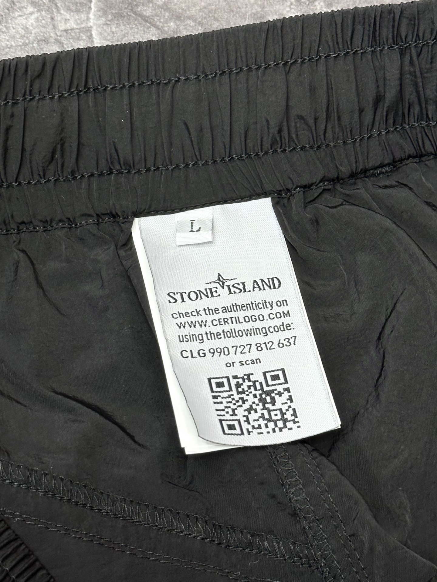 STONE ISLAND ZIP-UP emblem metal nylon sweatpants Black ストーン アイランド ジップアップ バッジ 金属 ナイロン スウェットパンツ ブラック