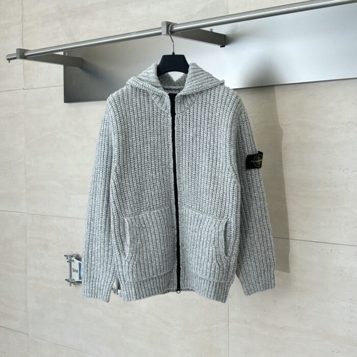 STONE ISLAND Knit ZIP-UP HOODIE Gray ストーン アイランド ニット ジップアップパーカー