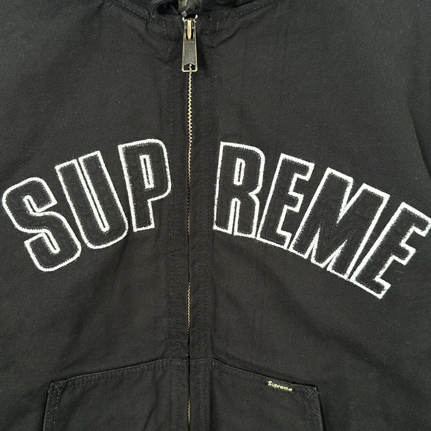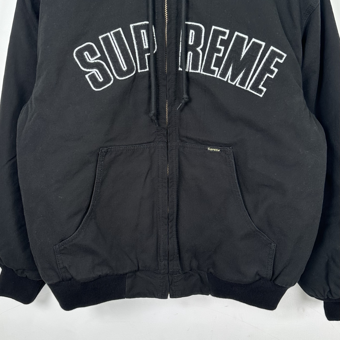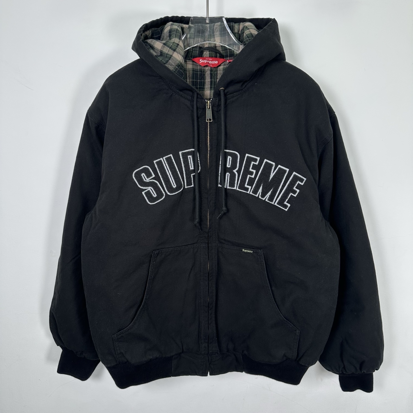 SUPREME 25FW REFLECTIVE ARC HOODED WORK JACKET20 DENIM interlayer cotton jacket Black シュプリーム ジップアップ デニム 中綿 ジャケット ブラック