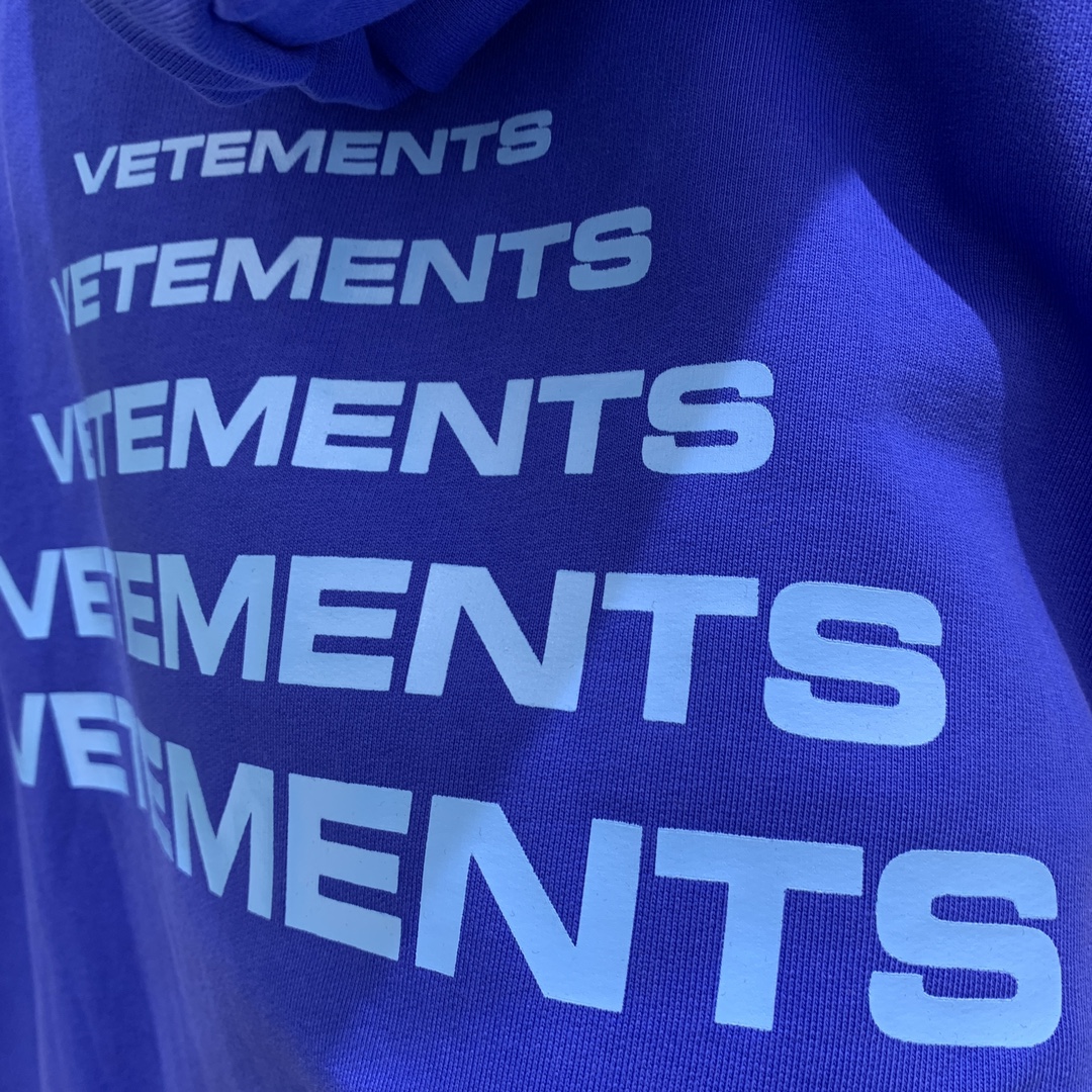 VETEMENTS Print LOGO loose HOODIE Blue ヴェトモン プリント LOGO ゆったり パーカー ブルー