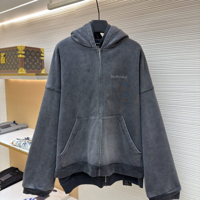 Balenciaga LOGO Two-in-one loose ZIP-UP jacket washed black バレンシアガ LOGO ツーインワン ゆったり ジップアップ ジャケット 洗い黒